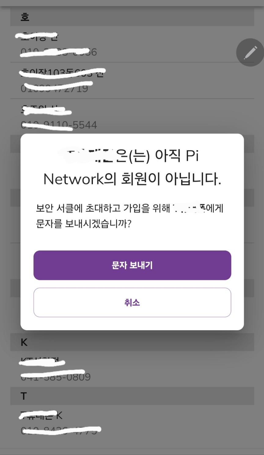 여러분의 연락처에서 파이코인을 채굴하시는 분을 추가 하시거나