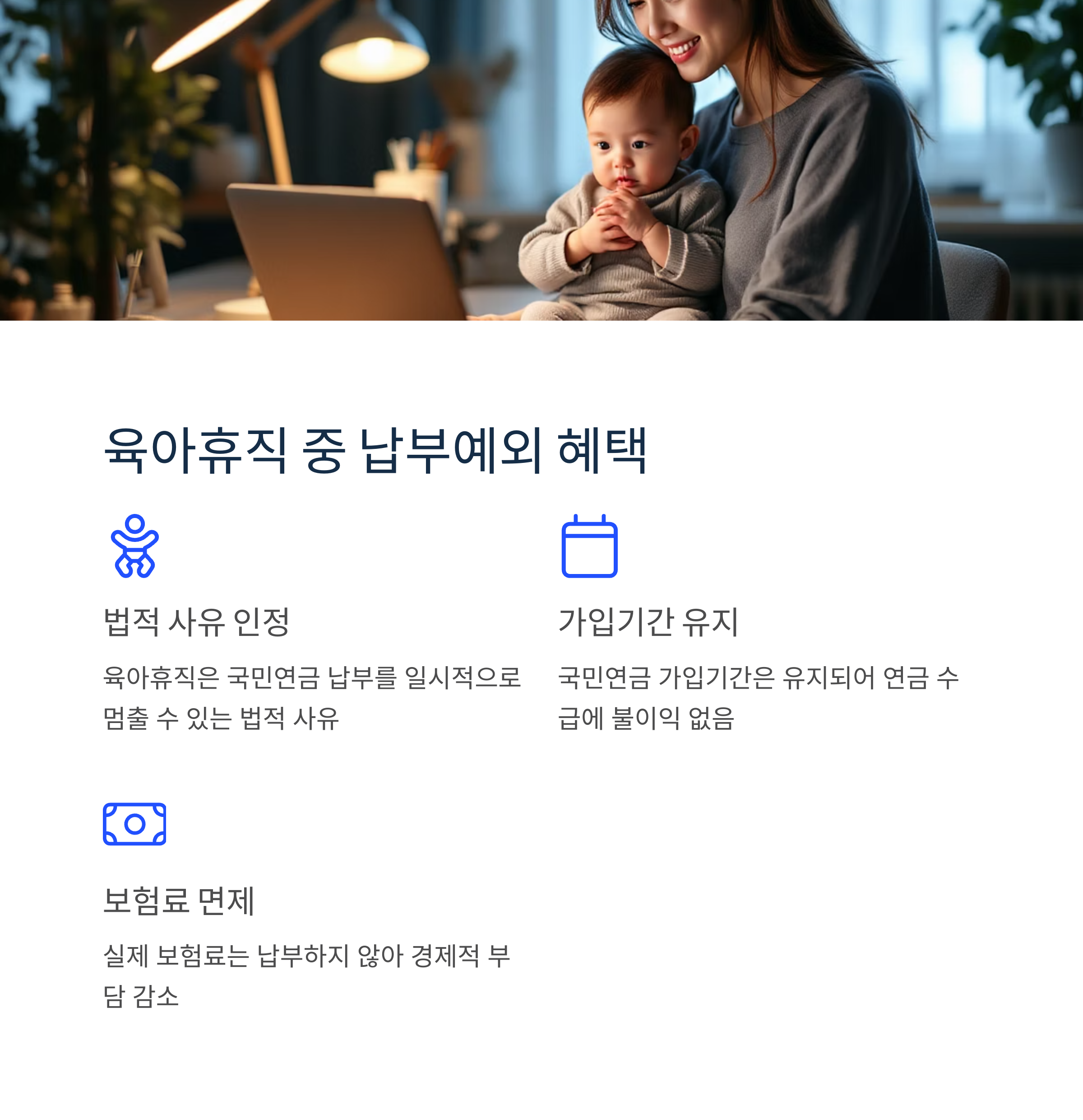 육아휴직은 국민연금 납부를 일시적으로 멈출 수 있는