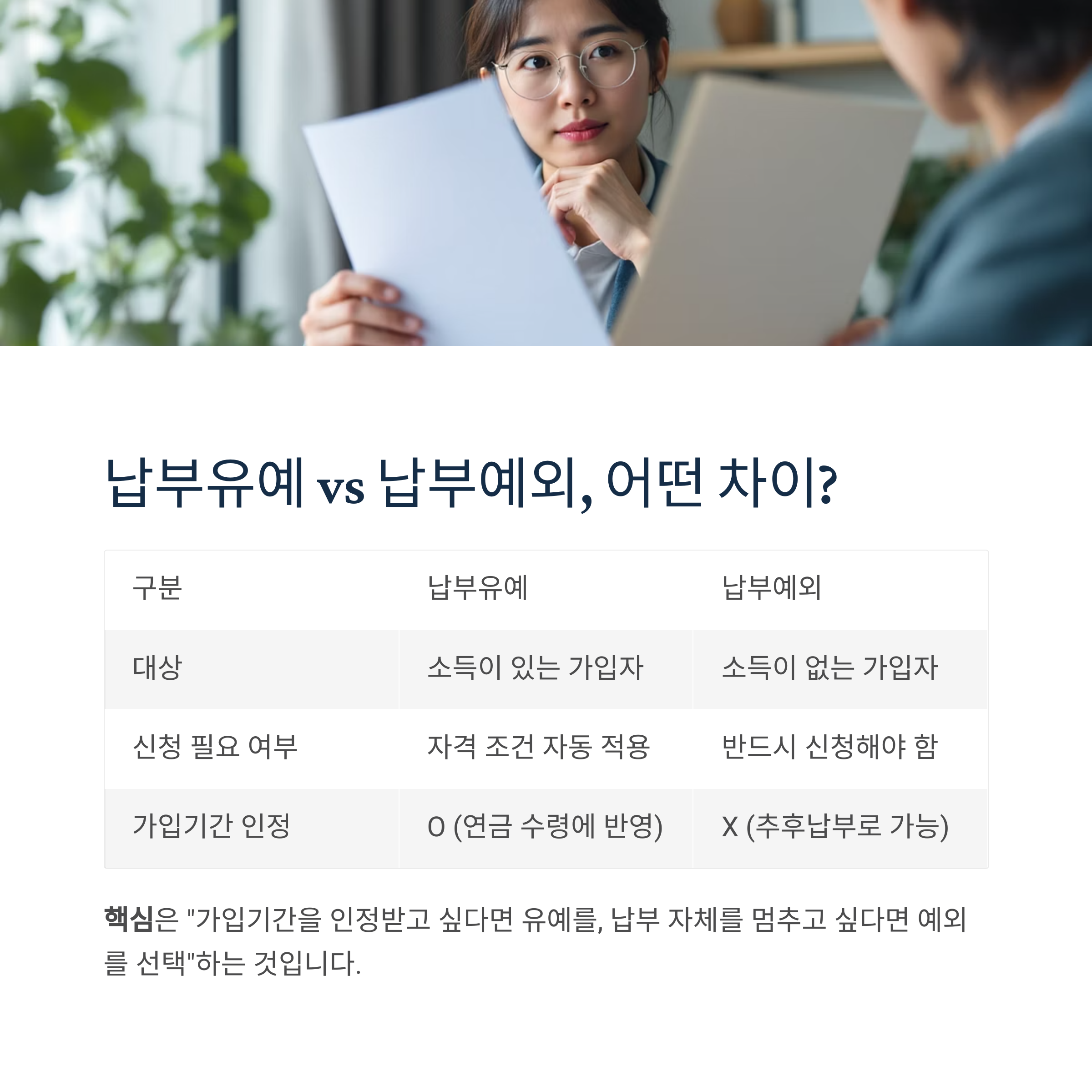 핵심은 "가입기간을 인정받고 싶다면 유예를,