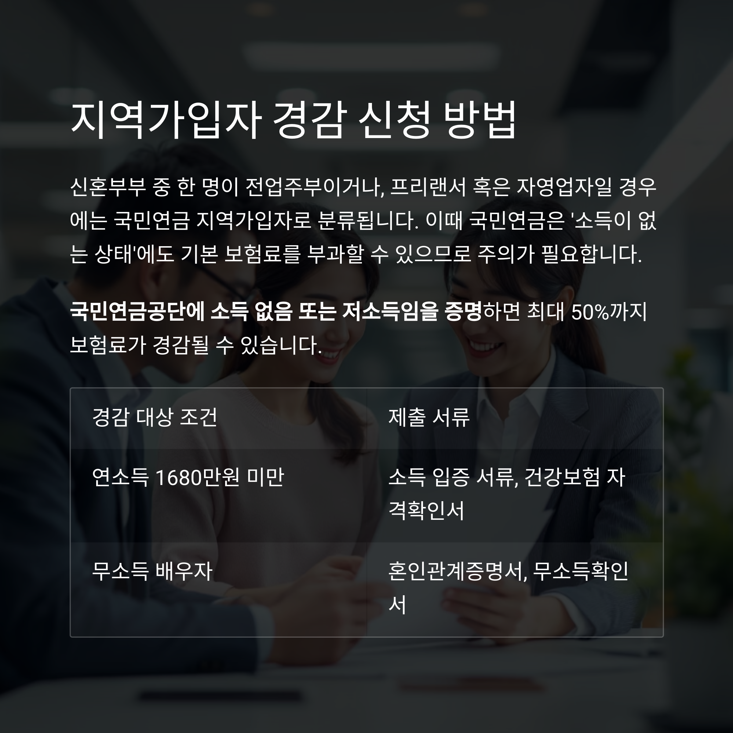 #국민연금절세 #신혼부부연금 #국민연금경감신청 #연금납부예외 #경력단절여성 #국민연금추후납부