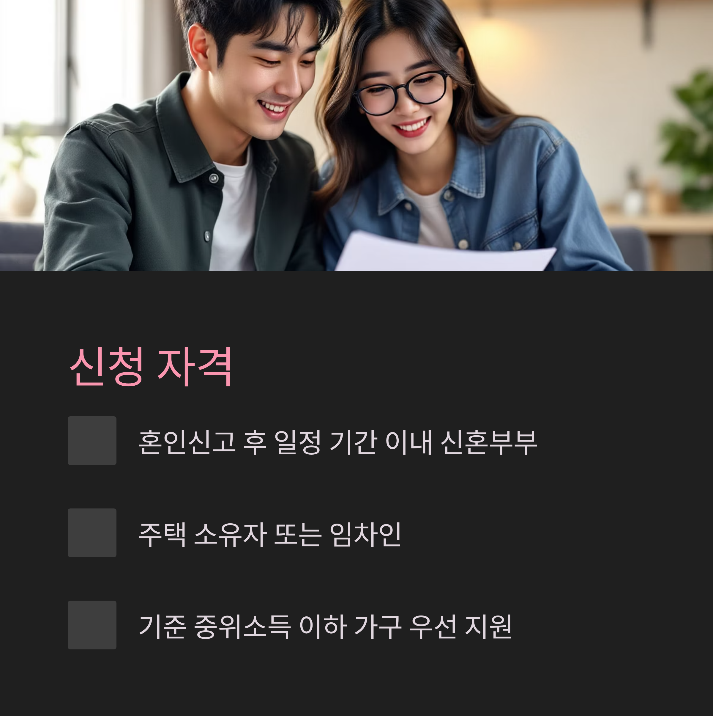 신청 자격은 혼인신고 후 일정 기간 이내의 신혼부부입니다