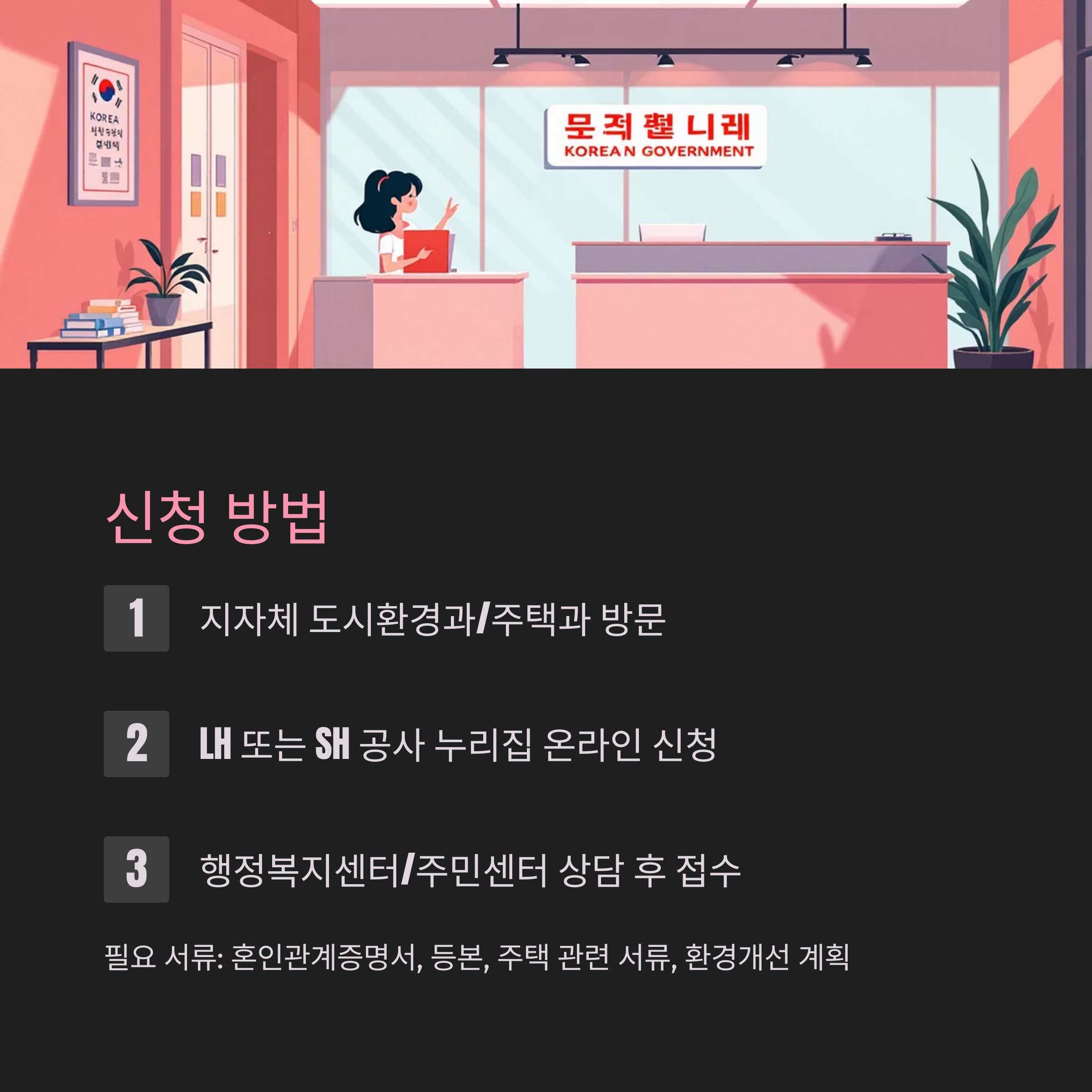 주택을 소유하고 있거나 임차 중이라도 주거환경 개선이 필요하다는 판단이 서면 신청이 가능합니다
