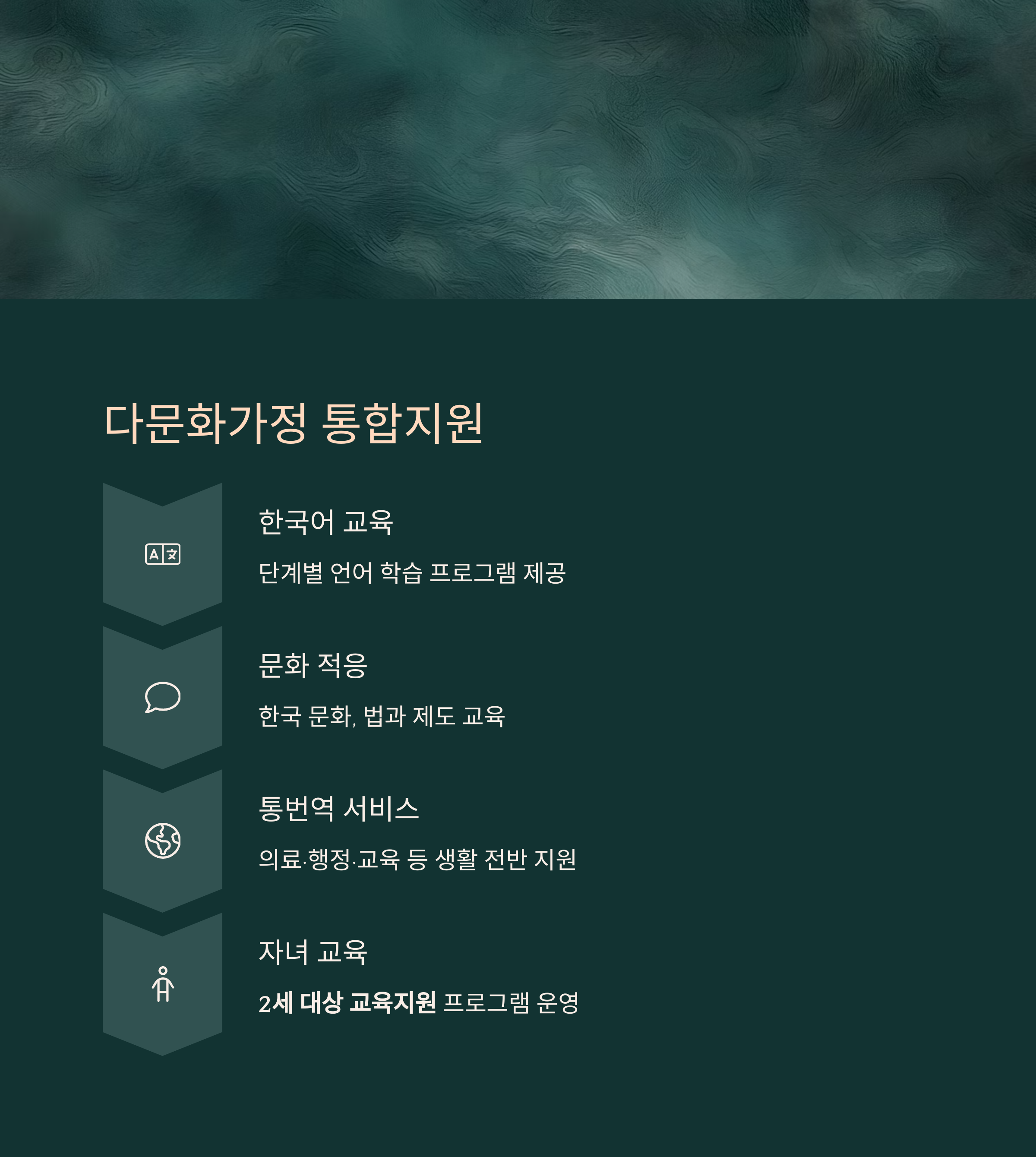 특히 건강가정지원센터를 통한 상담과 교육, 외국인 배우자를 위한 언어 및 문화 교육 등은 실질적인 삶의 질 향상에 도움을 줍니다