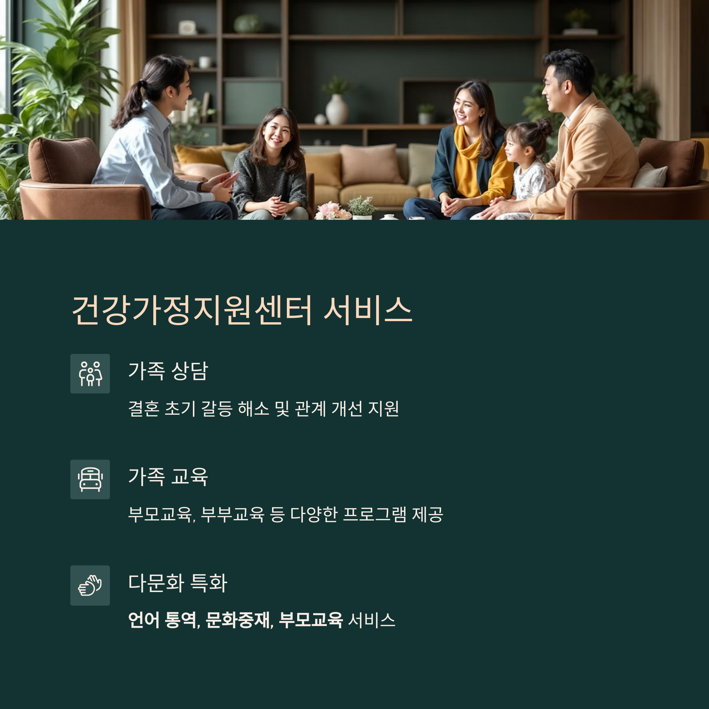 상담, 교육, 가족친화 프로그램 등 다양한 서비스를 제공합니다