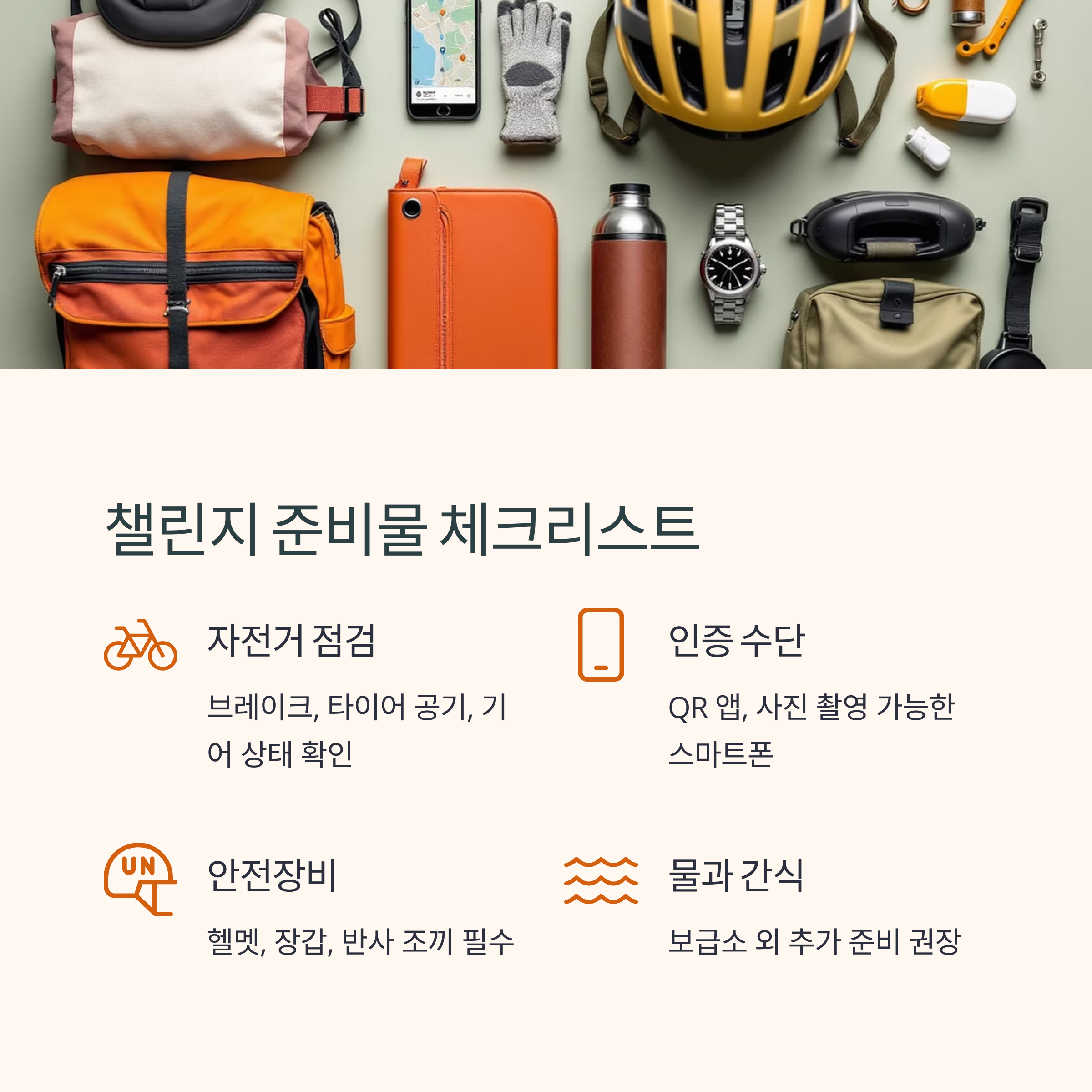 | 자전거 점검 | 브레이크, 타이어 공기, 기어 상태 |