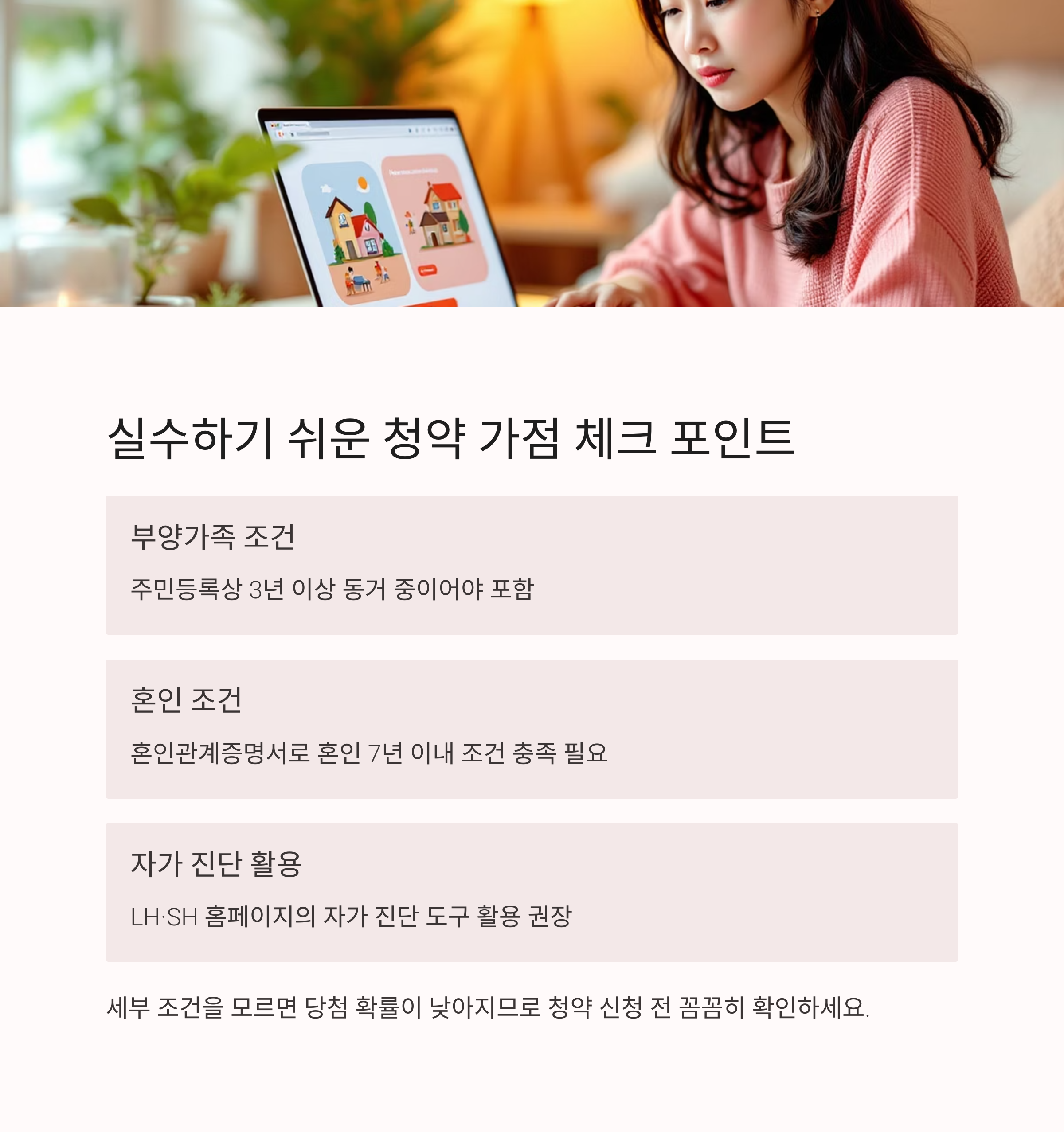 청약 신청 전 LH·SH 홈페이지의 자가 진단 도구를 활용하는 것이 좋습니다.