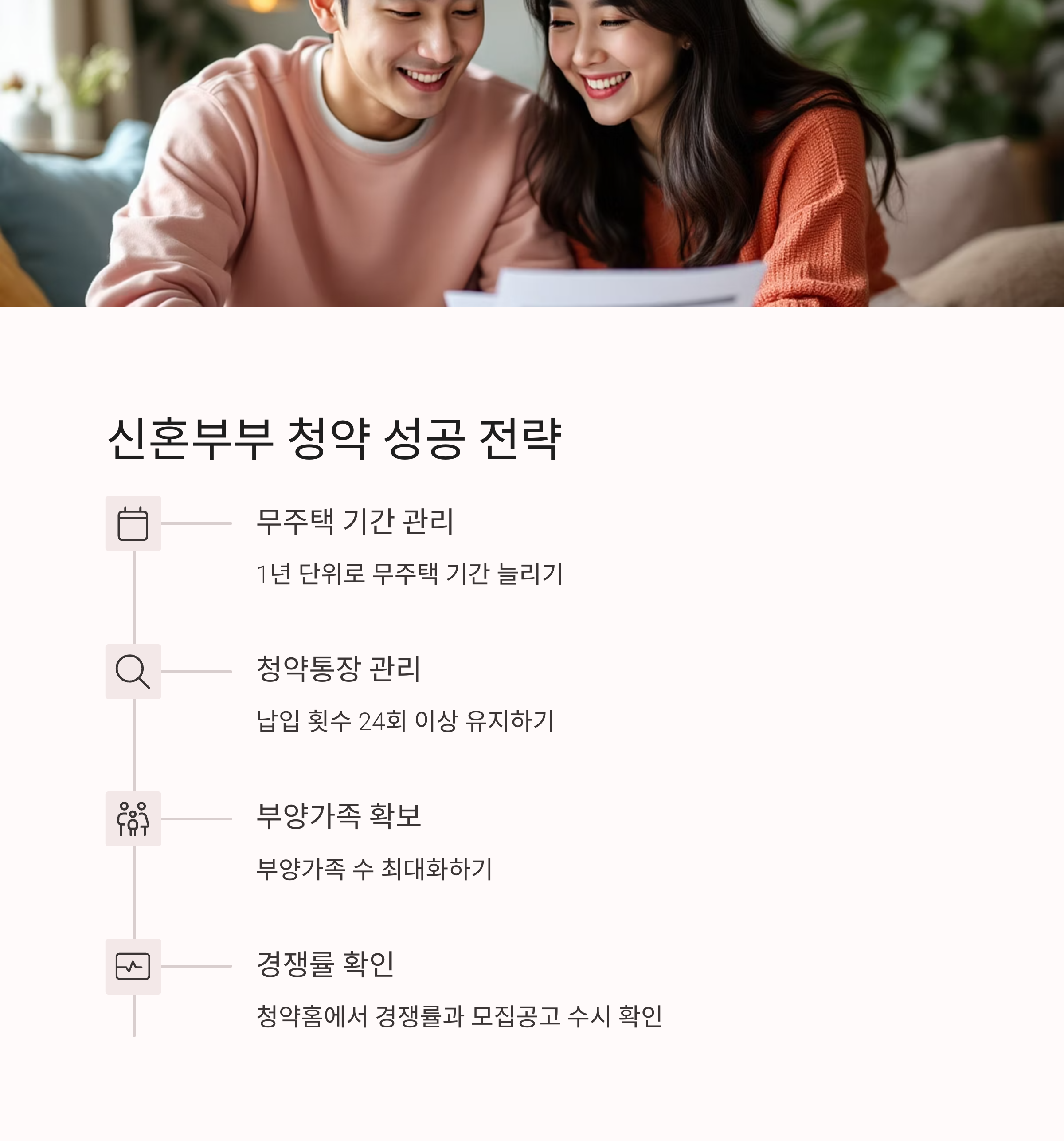 혼인 후 새로 가입하는 것보다, 미리 청약통장을 준비하면 가점에 유리합니다.
