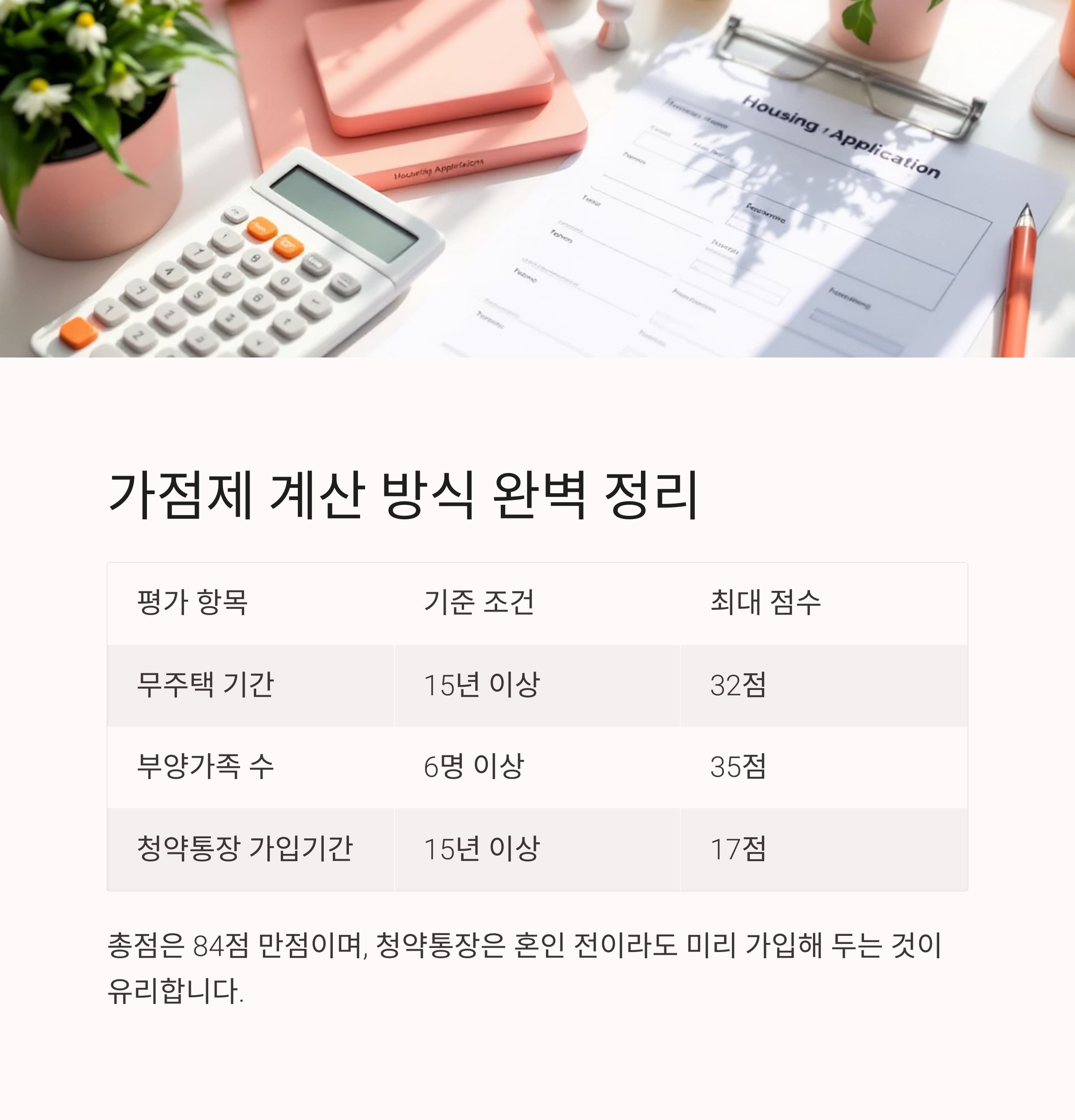 특히 무주택 기간, 부양가족 수, 청약통장 가입기간