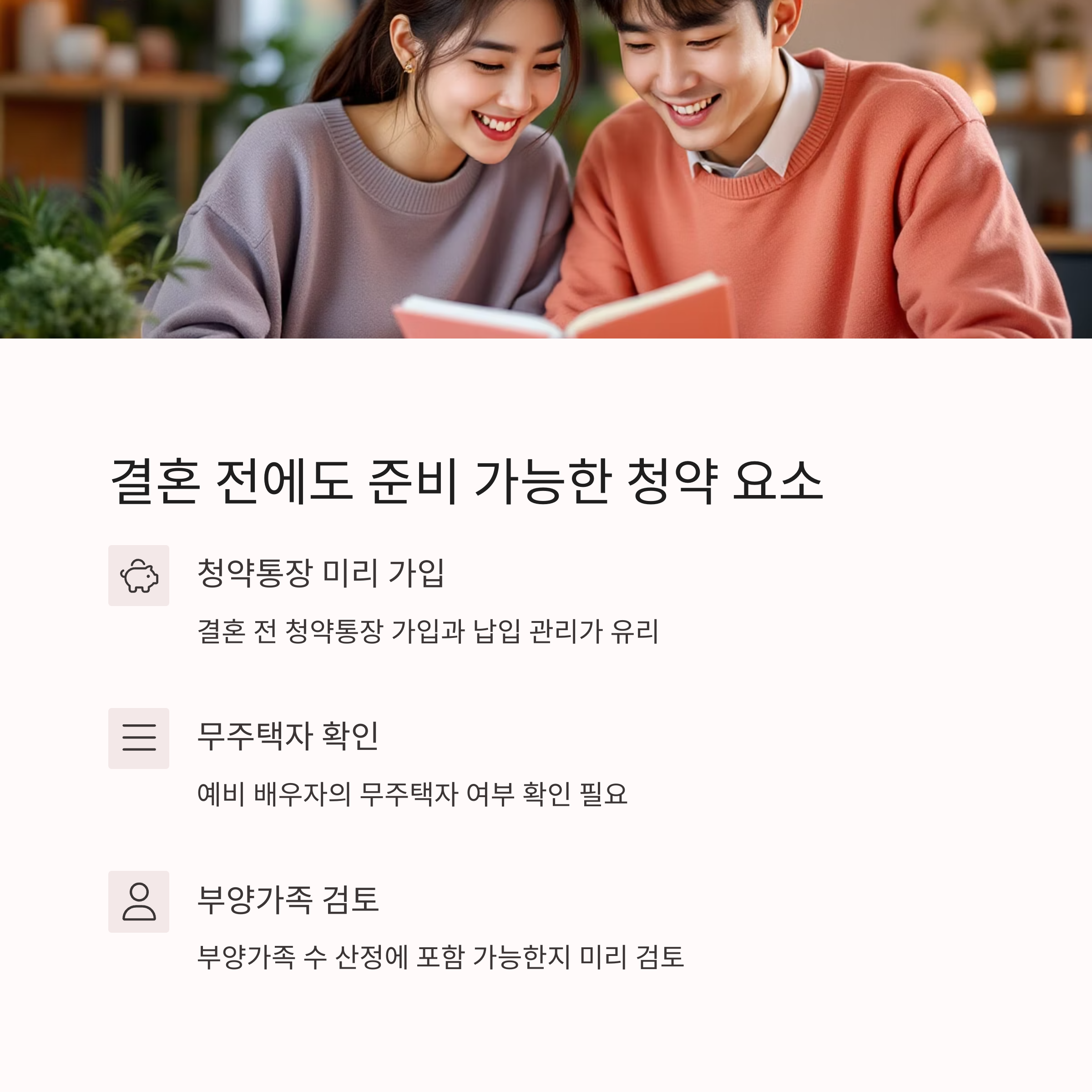 또한, 예비 배우자가 무주택자인지 확인하고 부양가족 수 산정에 포함 가능한지도