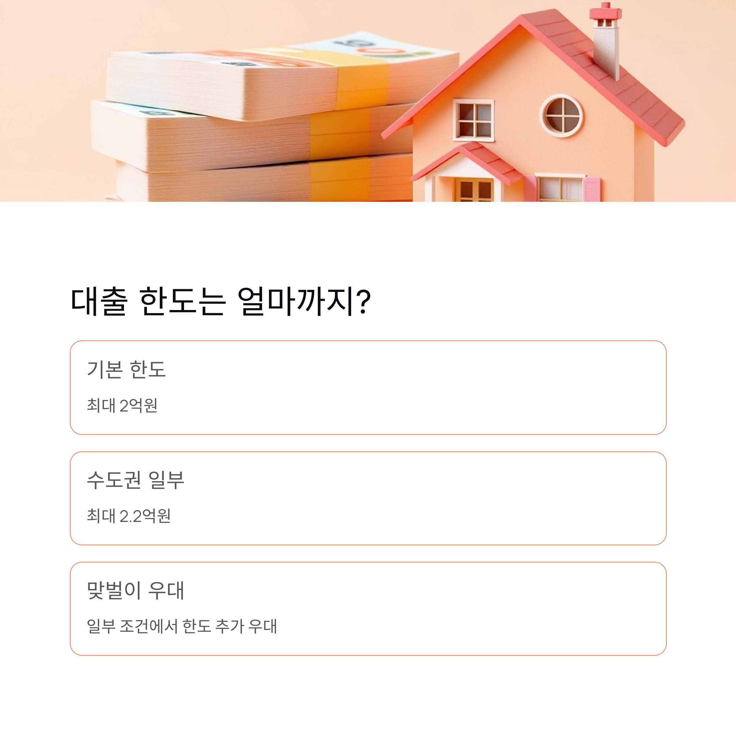 기본적으로는 최대 2억원, 수도권 일부 지역은 최대 2.2억원까지 가능하며