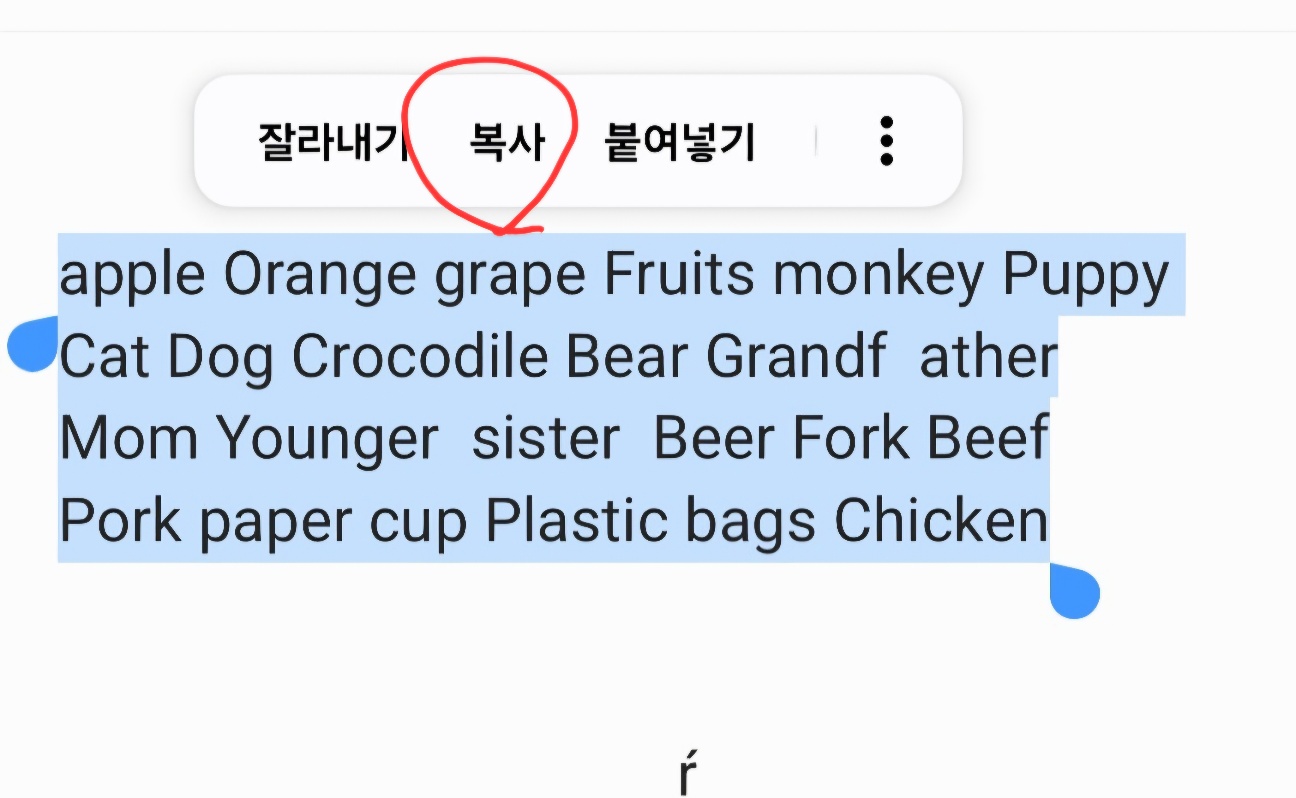 원하는 구절까지 파란색 범위를 넓혀 주시면 파란색 부분 만큼 복사가