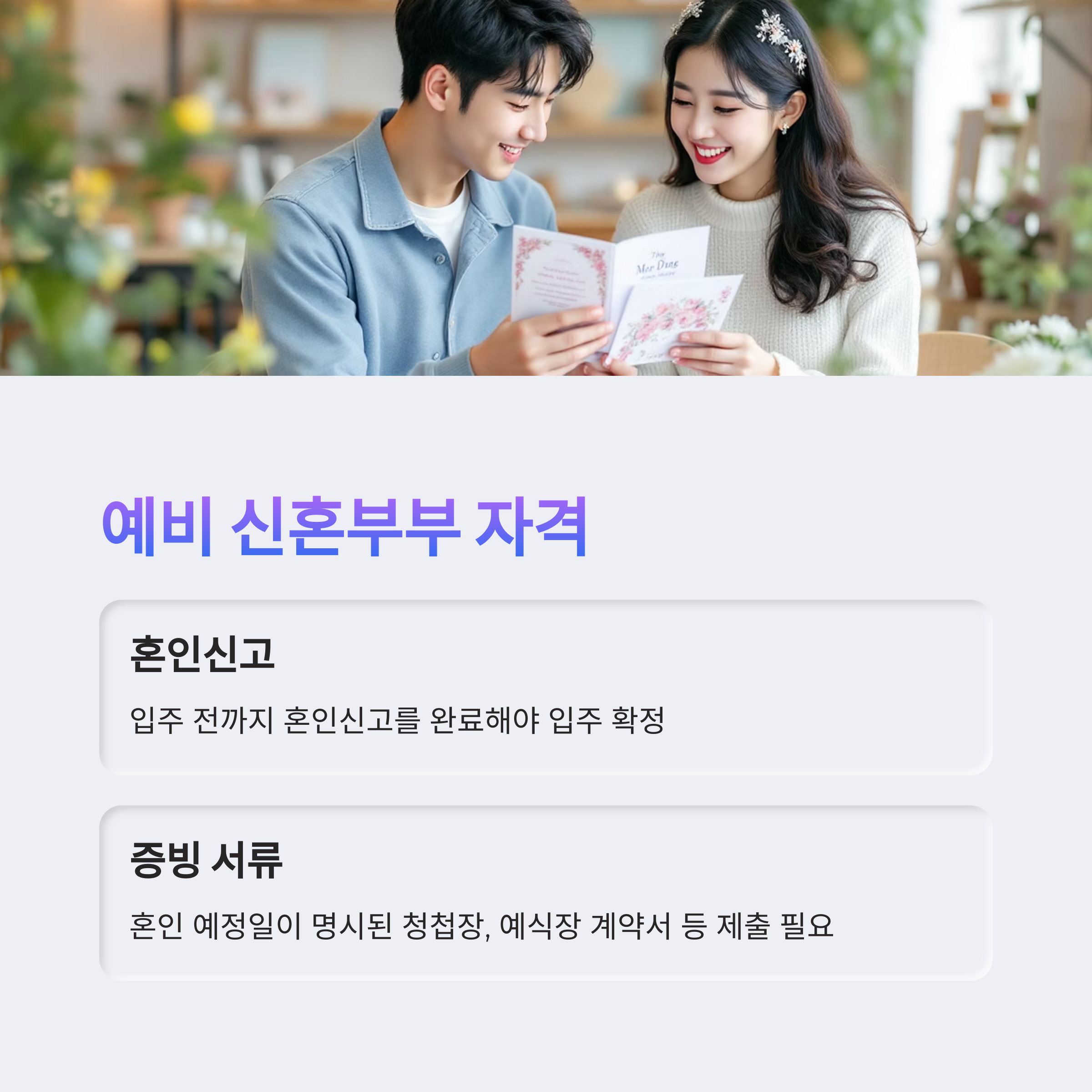 - 입주 전까지 혼인신고를 완료해야 입주 확정