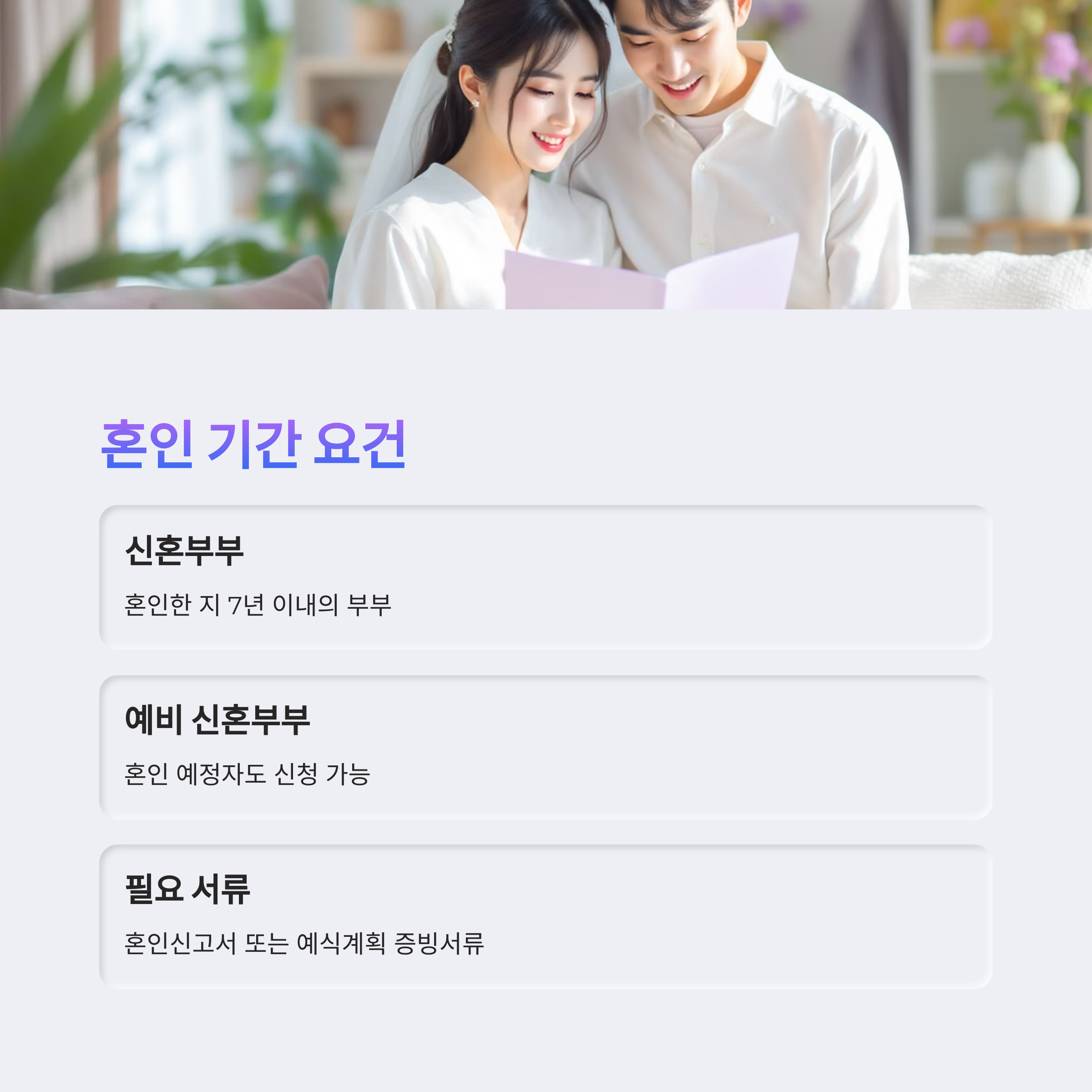 | 혼인 기간 | 혼인 7년 이내 또는 예비 신혼부부 |