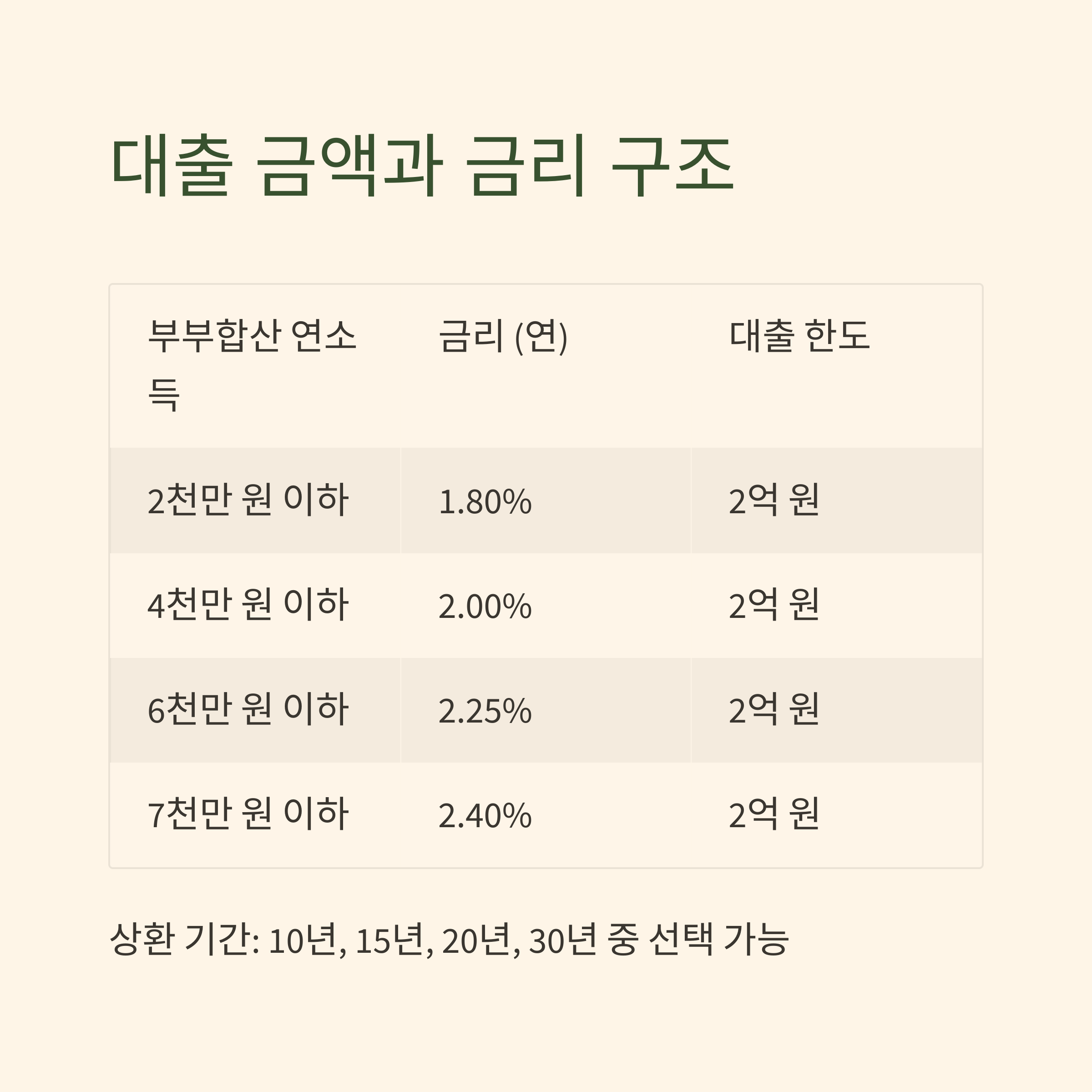 중요: 상환 기간은 10년, 15년, 20년, 30년 중 선택 가능하며
