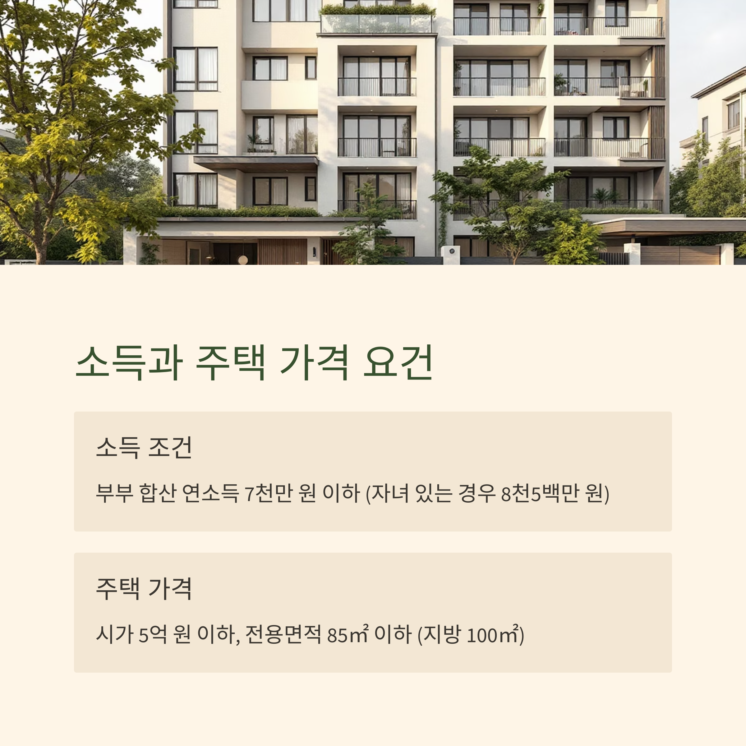 단, 혼인 기간 5년 이내이면서 자녀가 있는 경우는 연소득 8천5백만 원 이하까지 허용