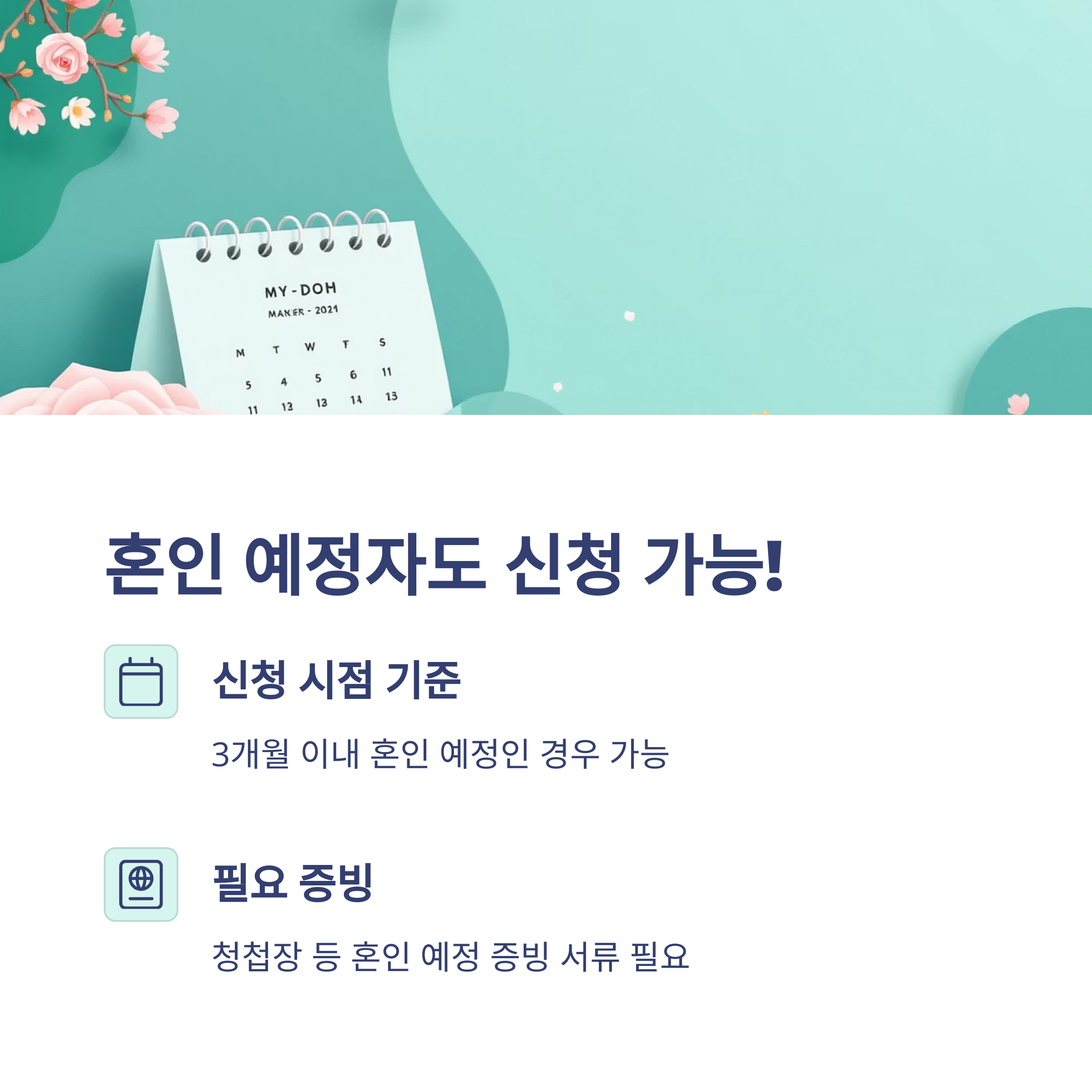 → 혼인 예정자도 신청 가능합니다. 단, 청첩장 등 증빙 필요