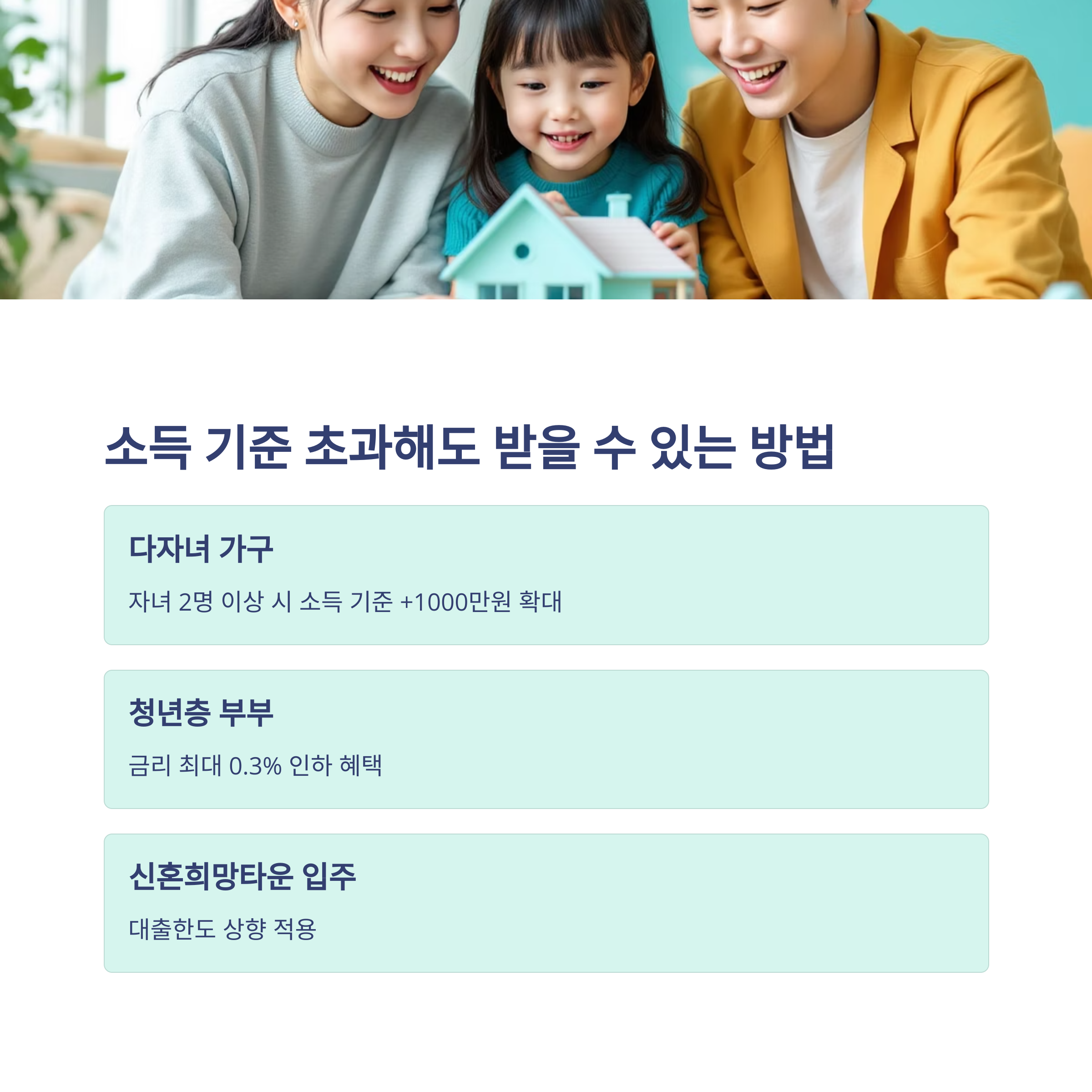 | 자녀 2명 이상 | 소득 기준 +1000만원 확대 |