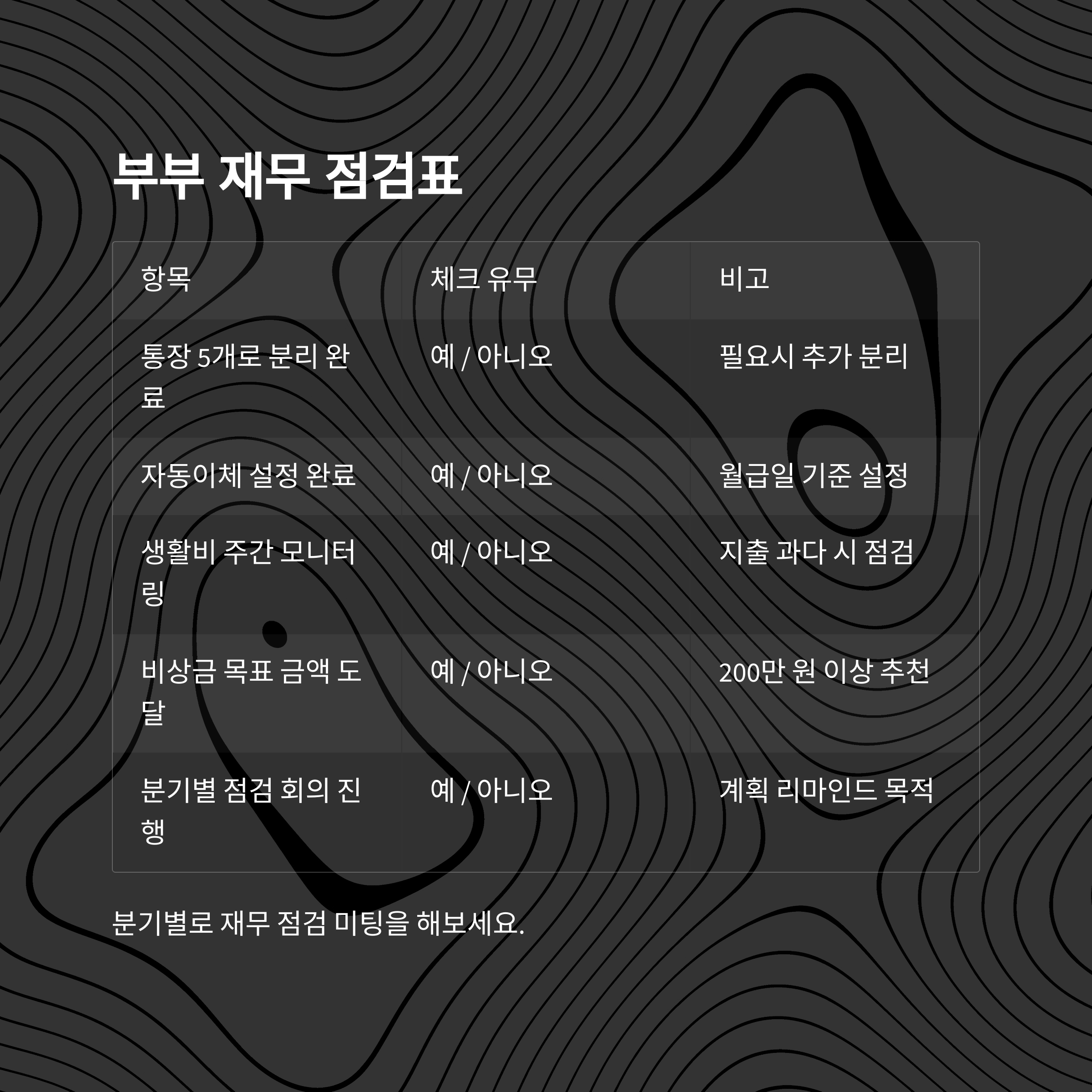 부부 간 재무 회의를 위한 통장 시스템 점검표
