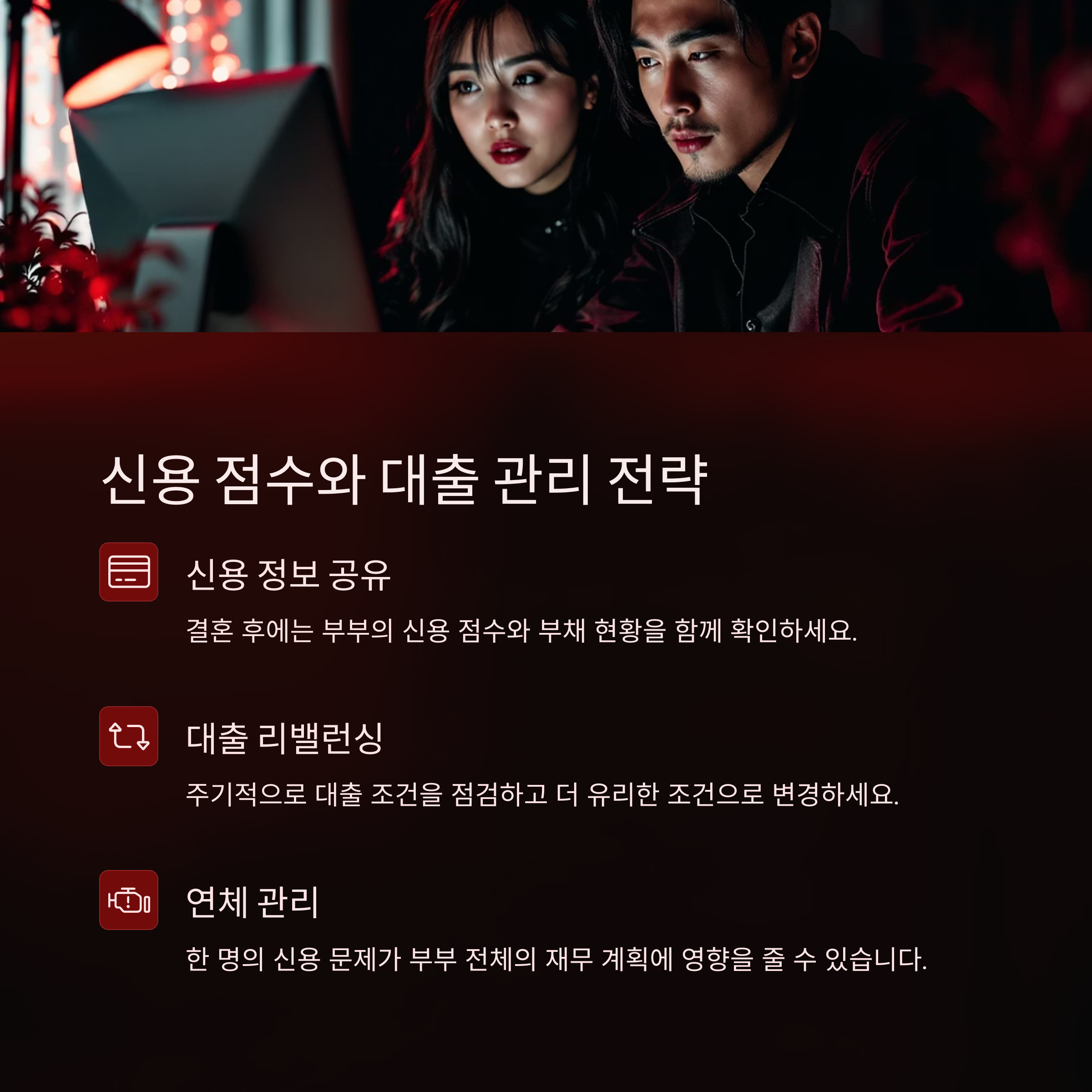결혼 후에는 부부의 신용 점수와 부채 현황을 공유하고