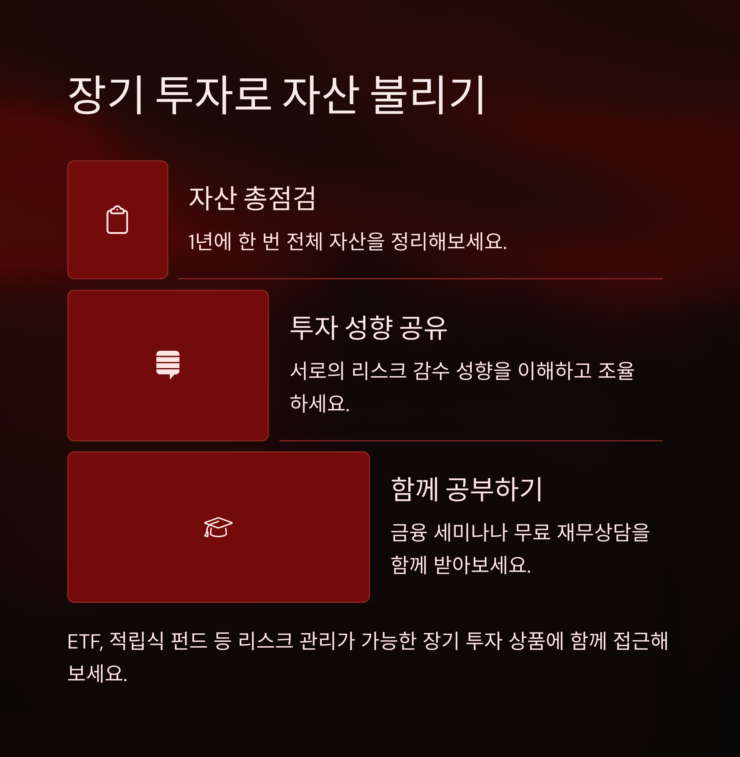 함께 수강하는 것도 장기적 재무 파트너십에 큰 도움이 됩니다.