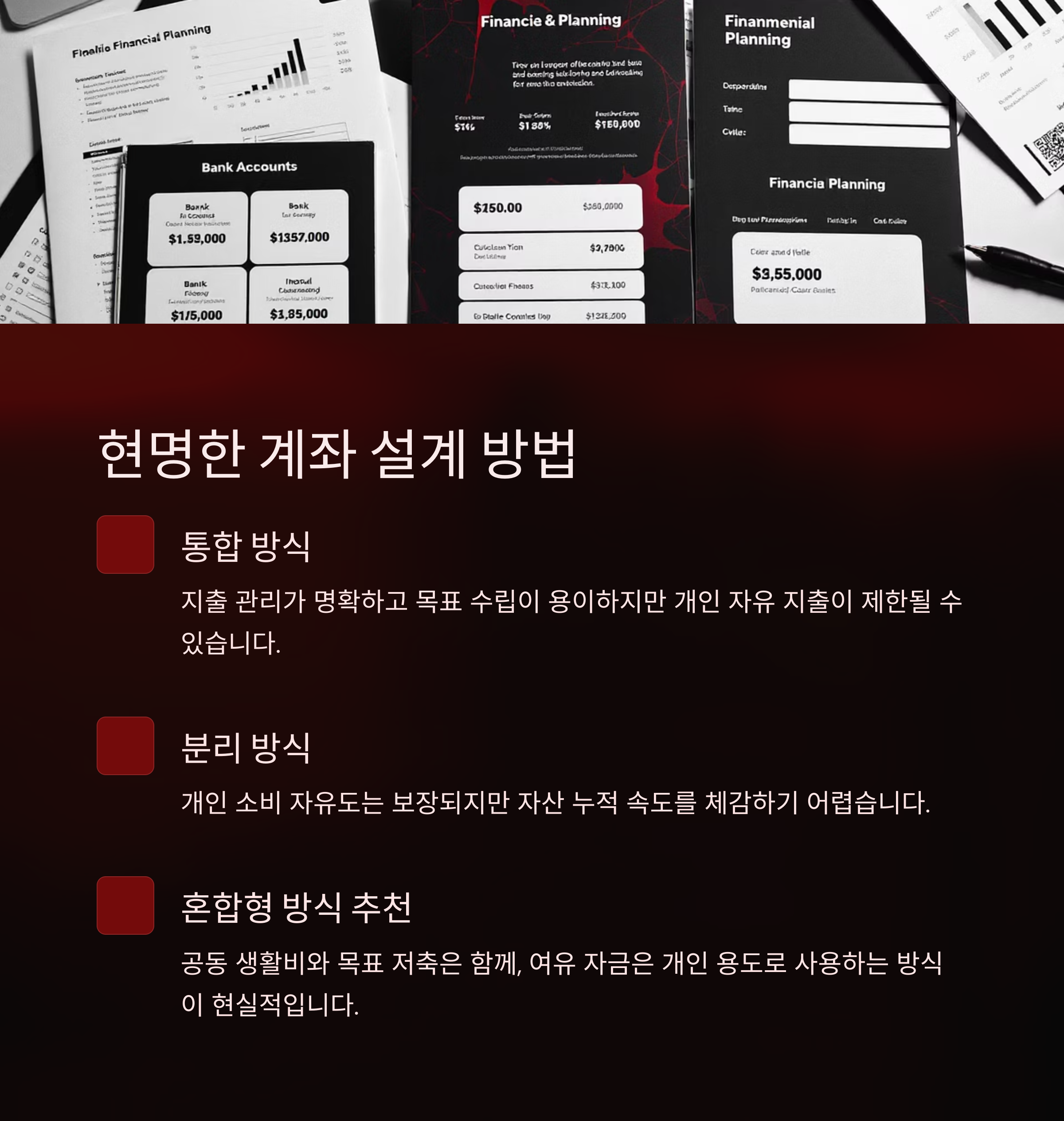 서로의 금융 습관, 소비 패턴, 미래 목표 등을 조율하지 않으면