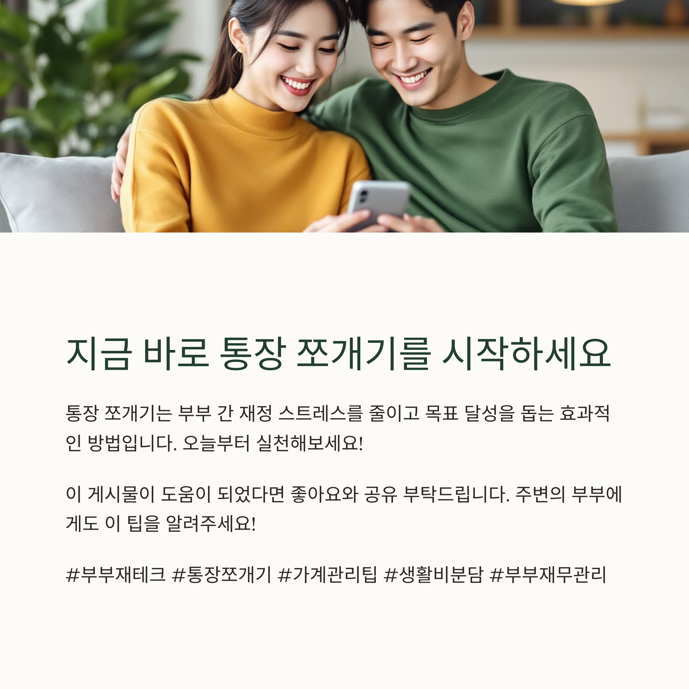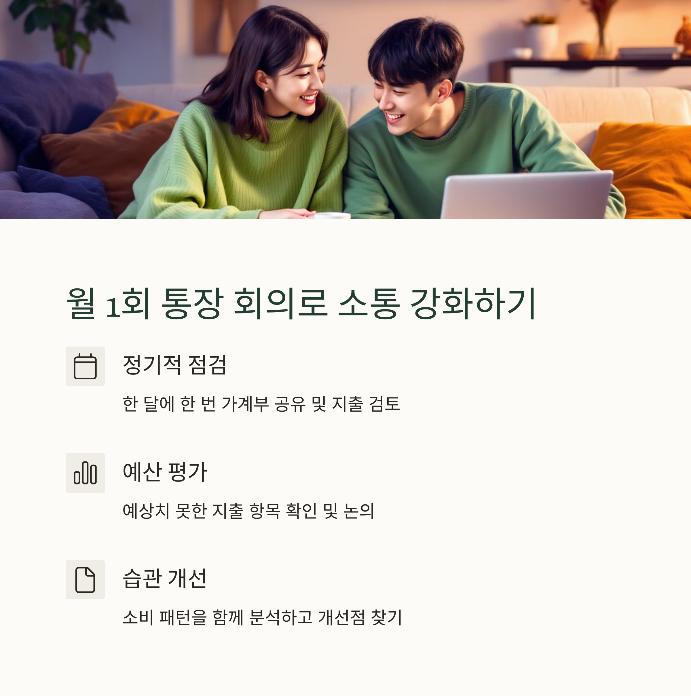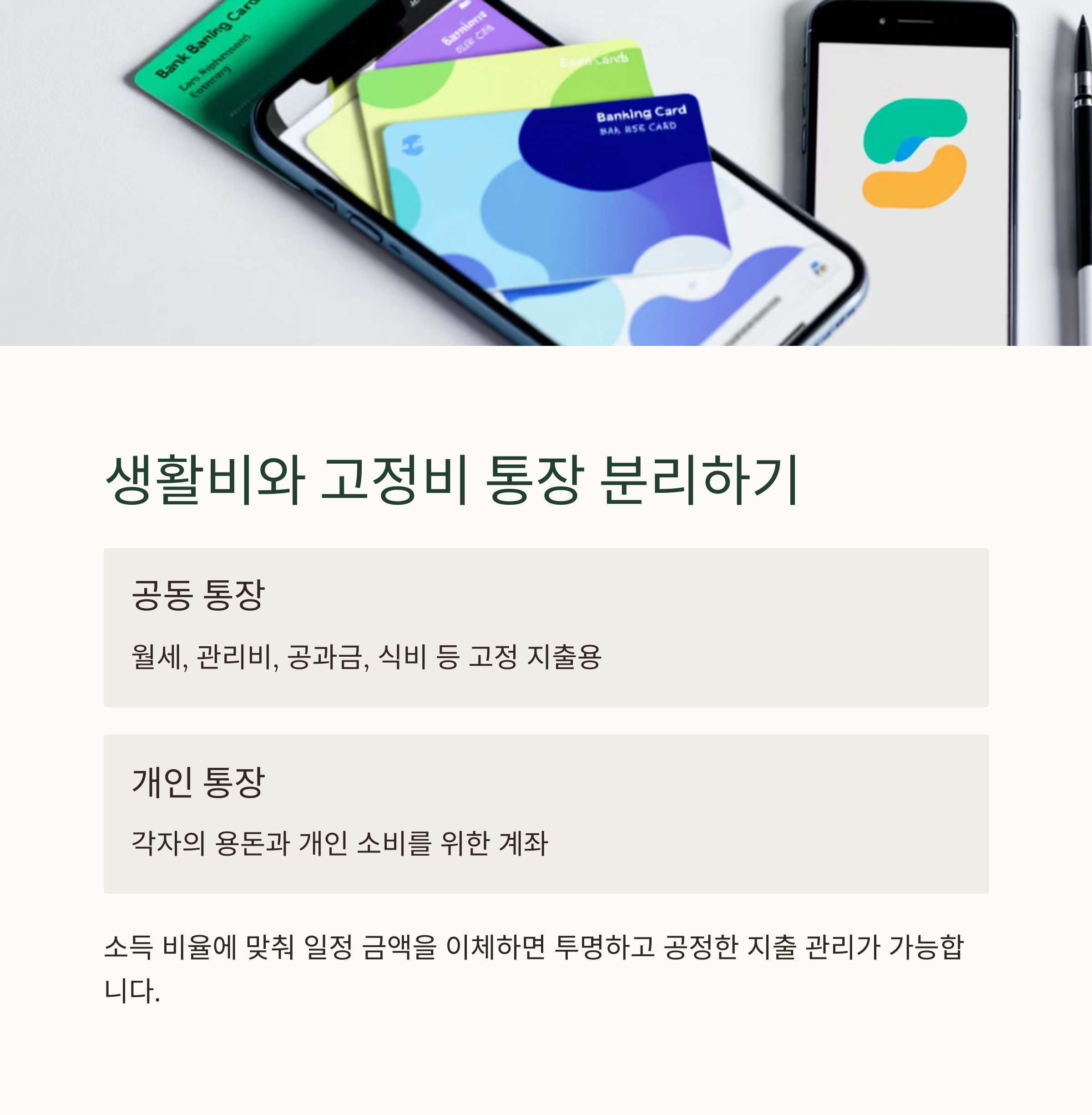 | 공동통장 | 생활비/공과금 | 고정비와 공통지출 관리 |