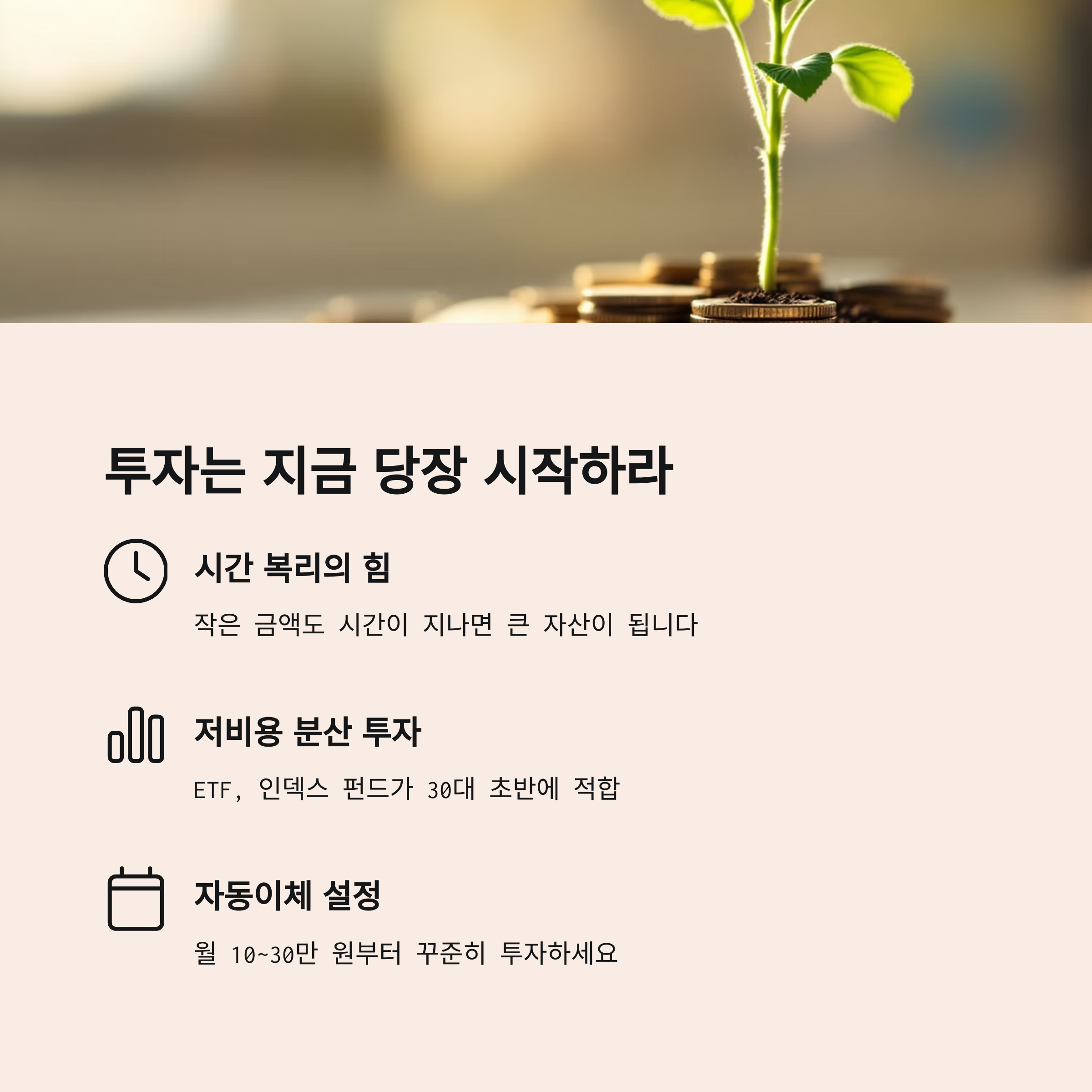 30대 초반일수록 ETF, 인덱스 펀드와 같은 저비용 분산 투자가 적합합니다