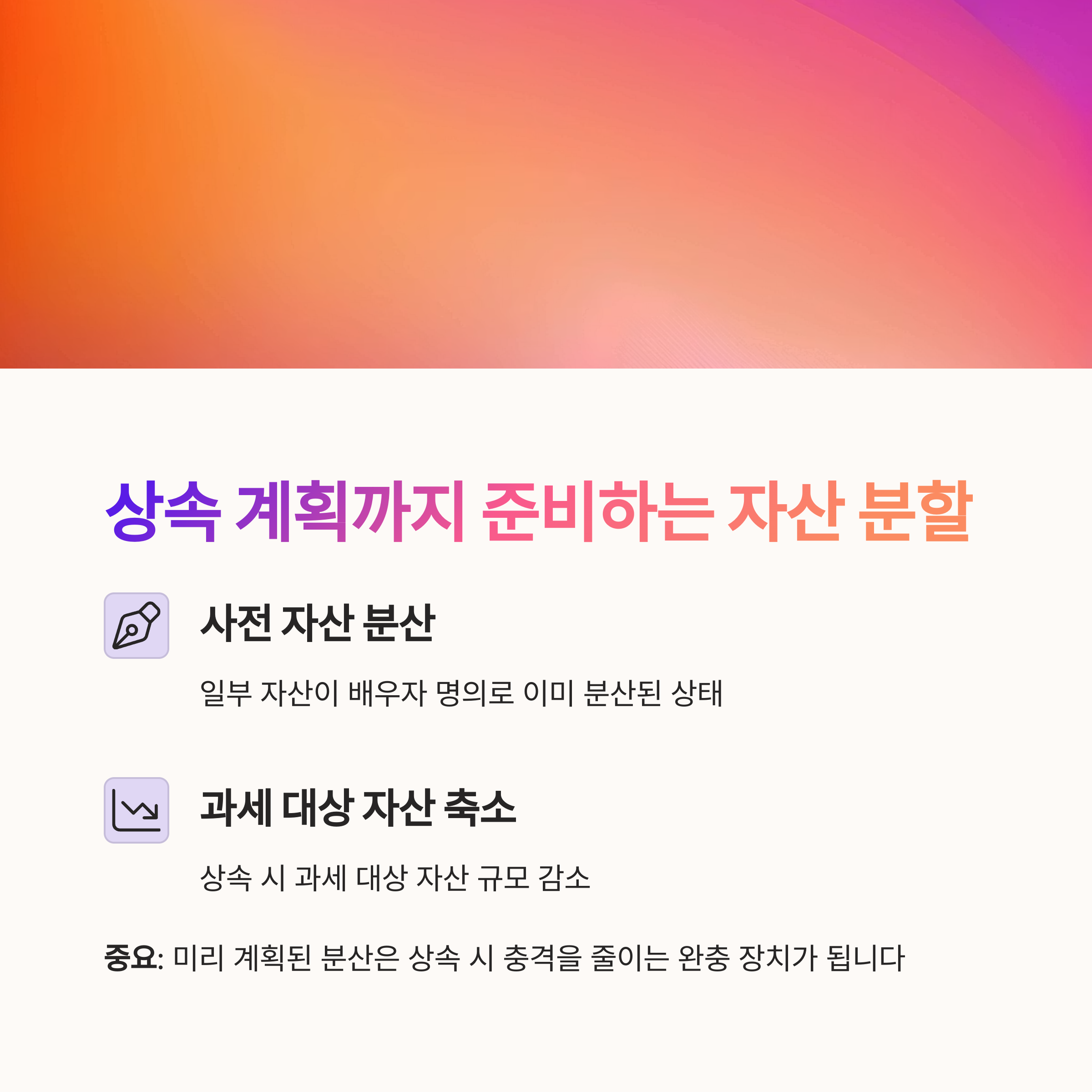 중요: 미리 계획된 분산은 상속 시 충격을 줄이는 완충 장치가 됩니다