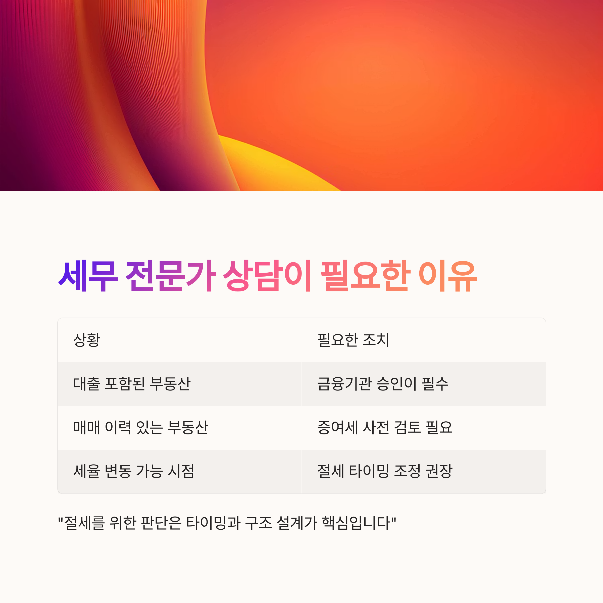 "절세를 위한 판단은 타이밍과 구조 설계가 핵심입니다"