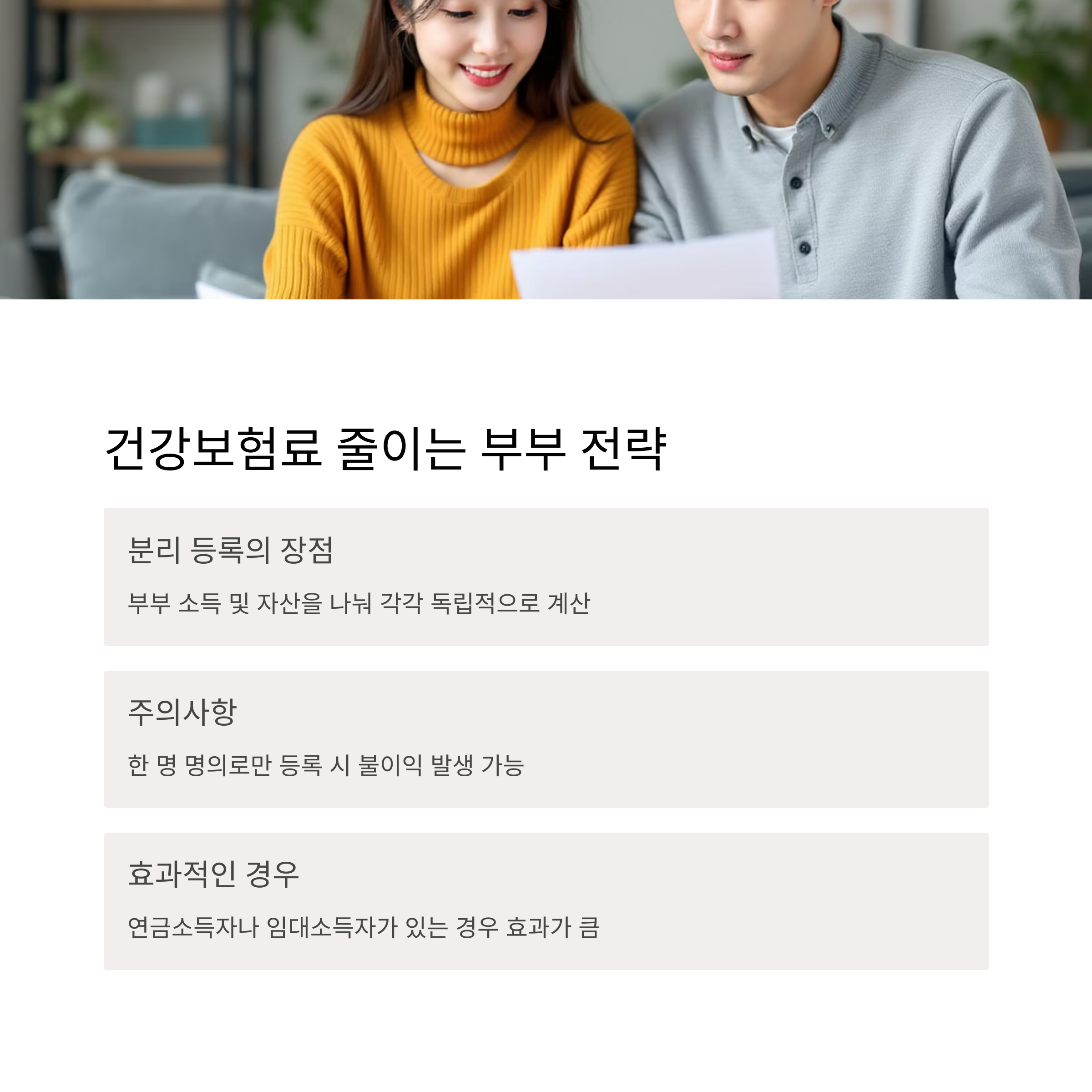 건강보험 지역가입자 부부라면 한 명 명의로만 등록 시 불이익이 발생할 수 있습니다.