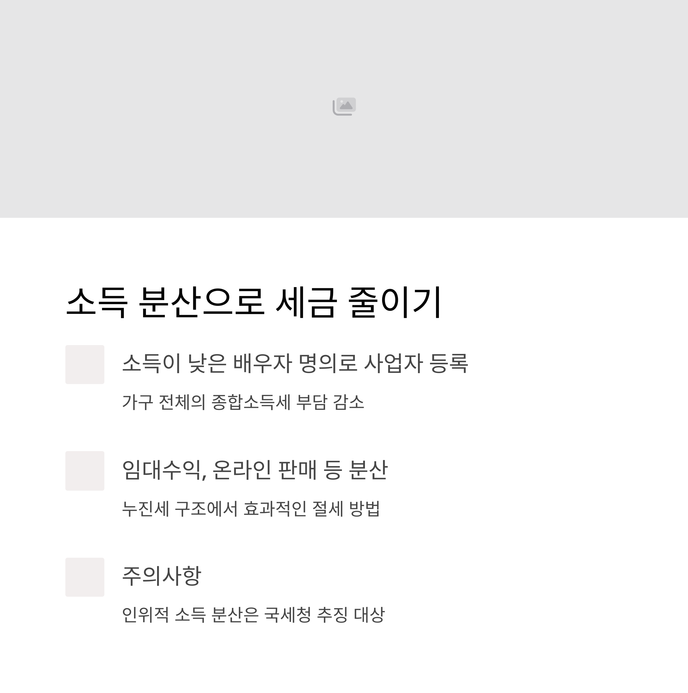 "배우자에게 임대수익, 온라인 판매, 블로그 수익 등을 분산하면 효과적입니다"