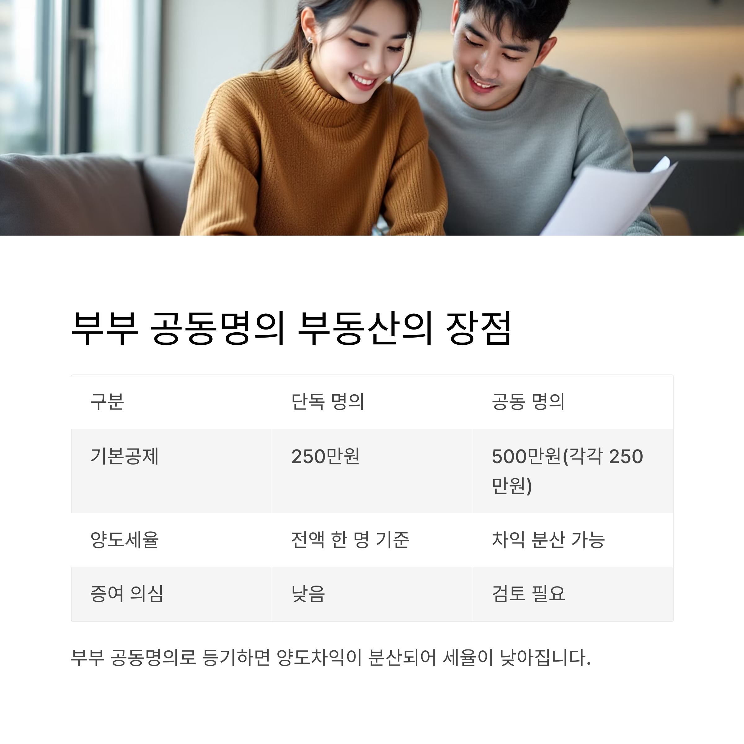 부동산을 구입할 때 부부 공동명의로 등기하면 장점이 많습니다.