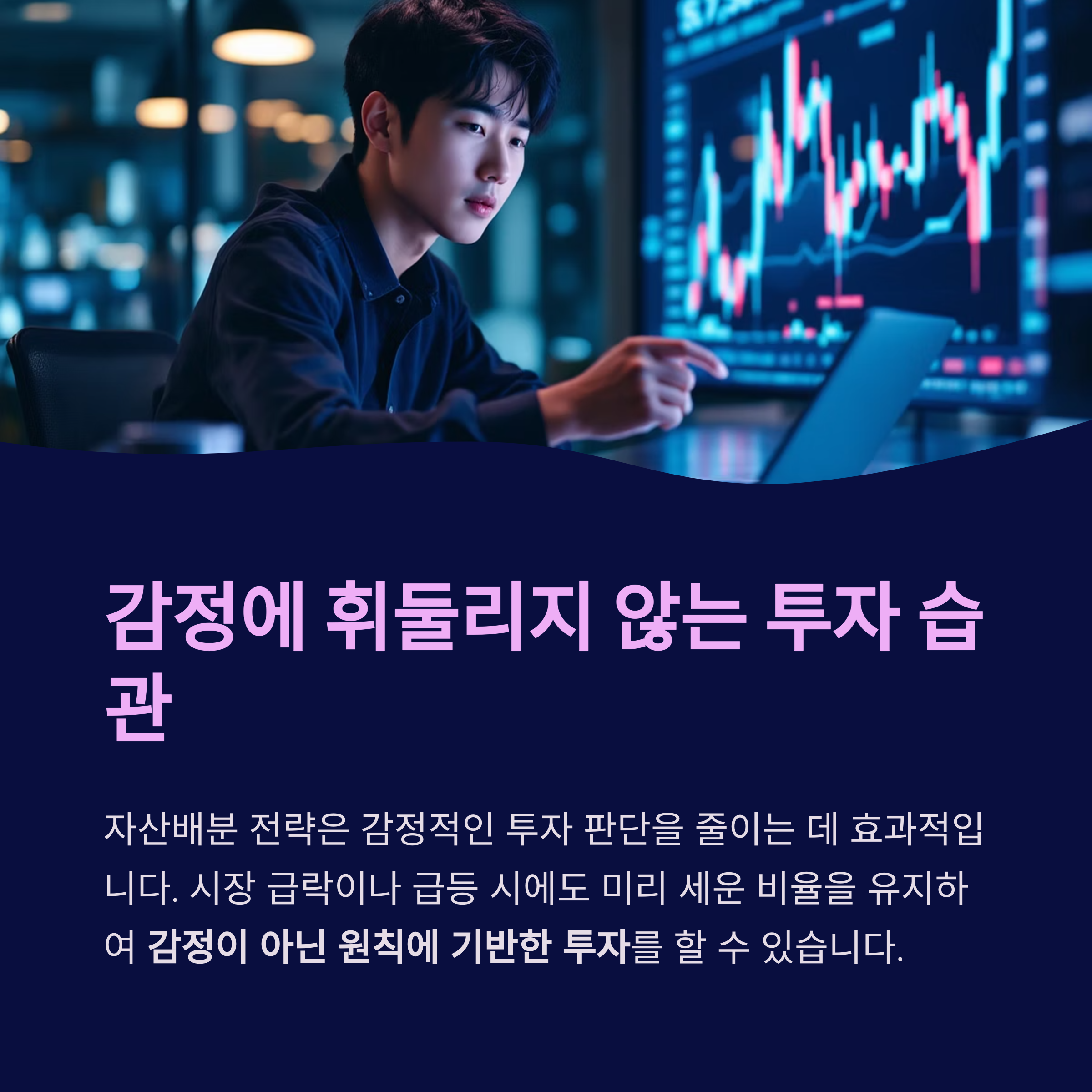자산배분 전략은 감정적인 투자 판단을 줄이는 데도 효과적입니다