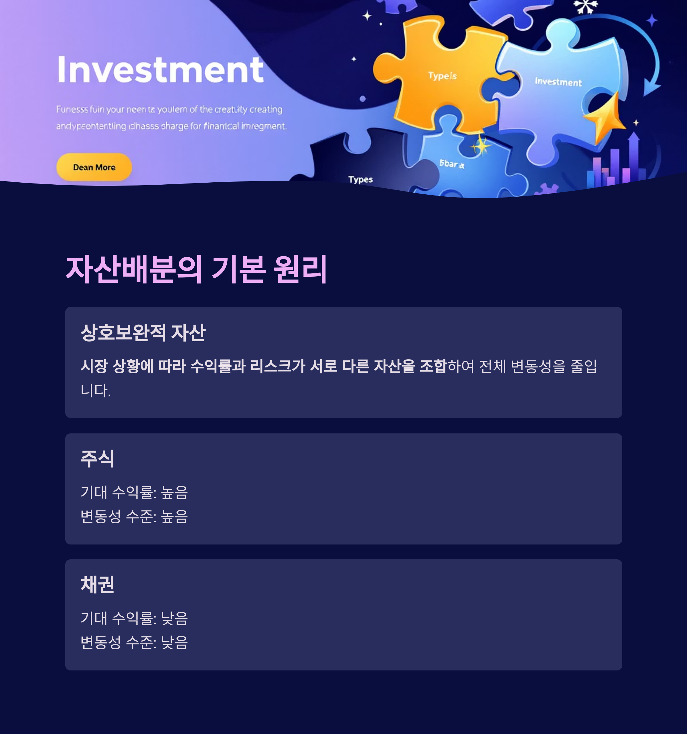 투자 초보도 이해할 수 있도록 자산배분의 기본 개념과 실전 적용법을 정리한 가이드입니다