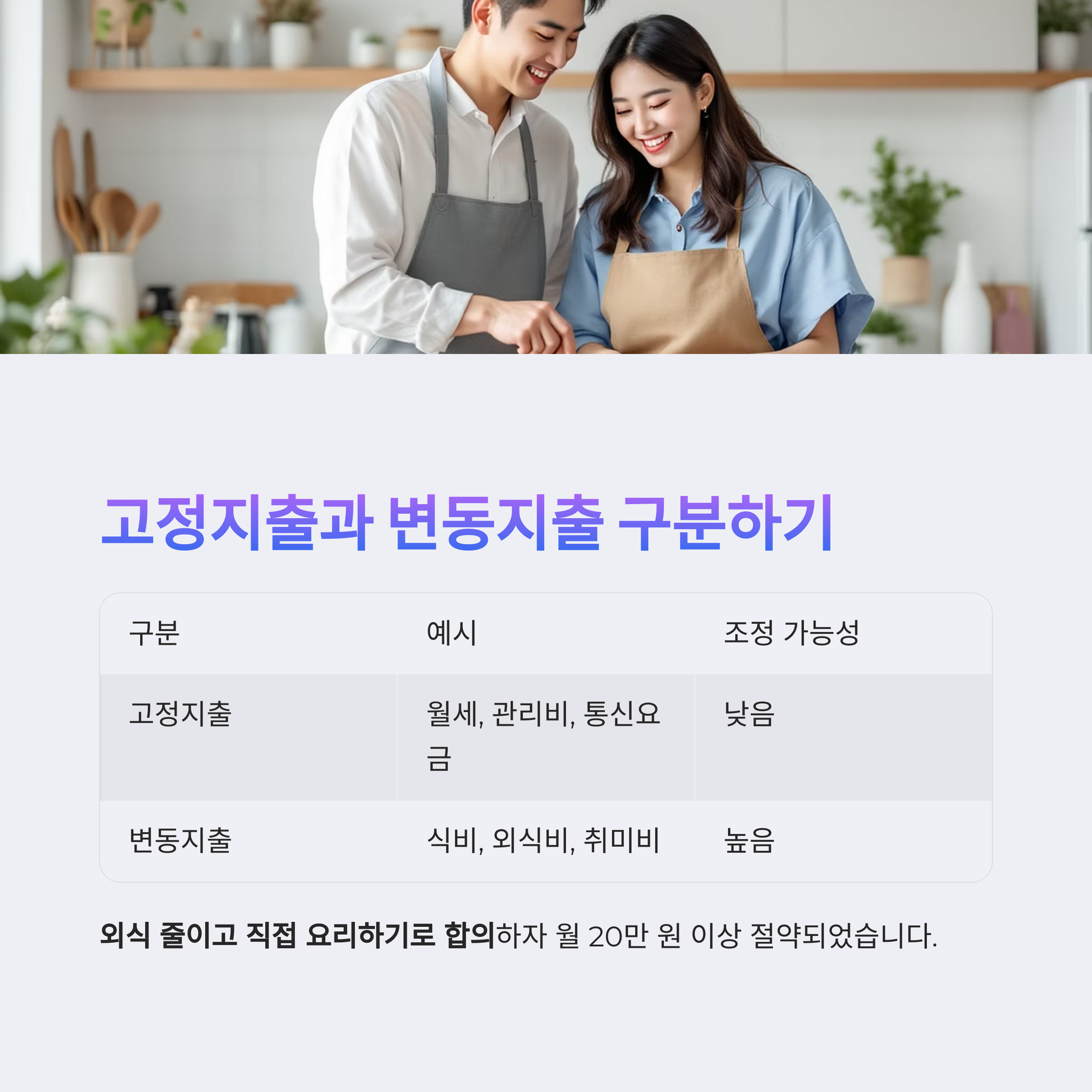 변동지출 항목을 분석해 외식 횟수를 줄이고 직접 요리하기로 합의하자