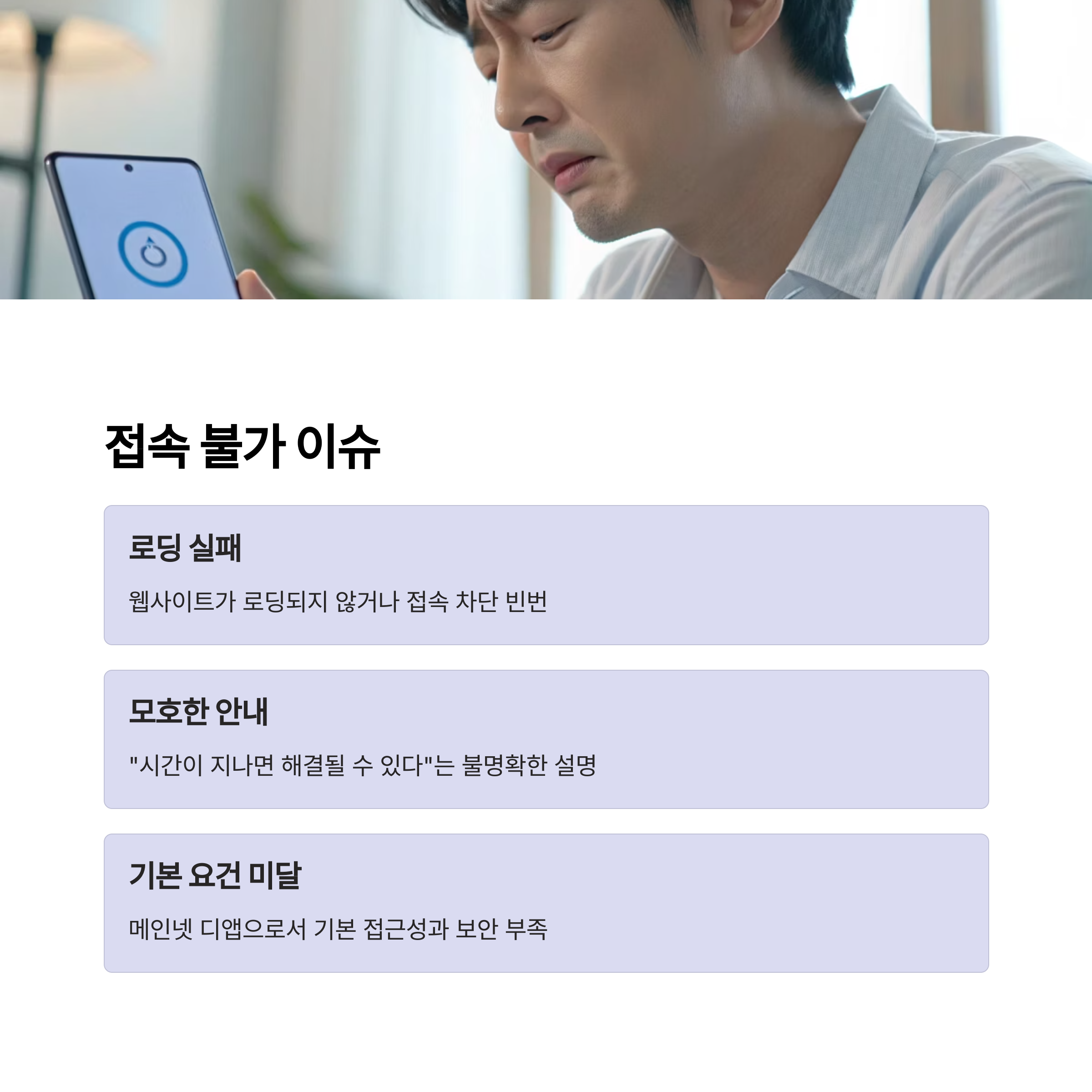 웹사이트가 로딩되지 않거나 접속이 차단되는 사례가 빈번하며,