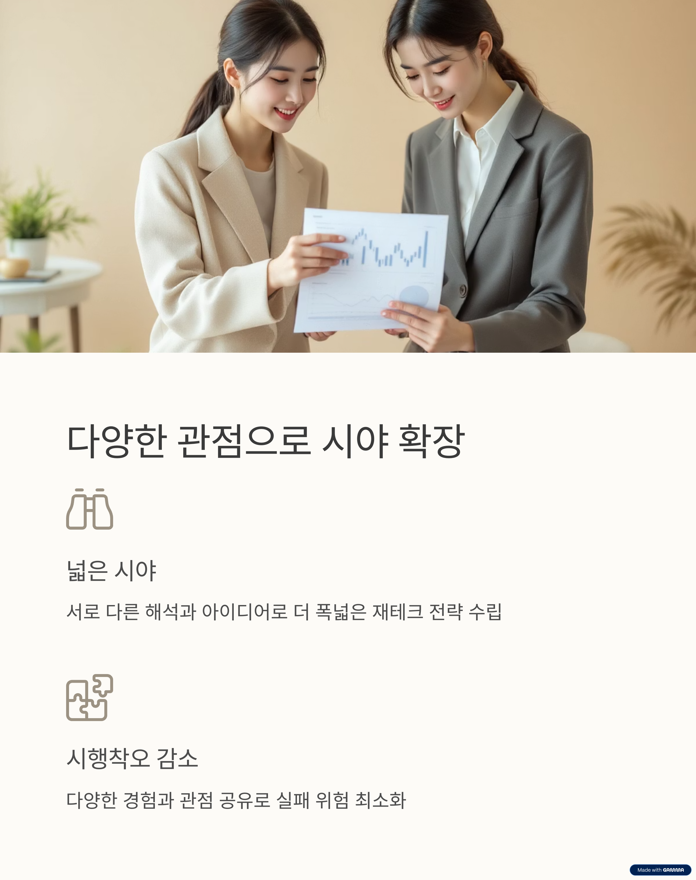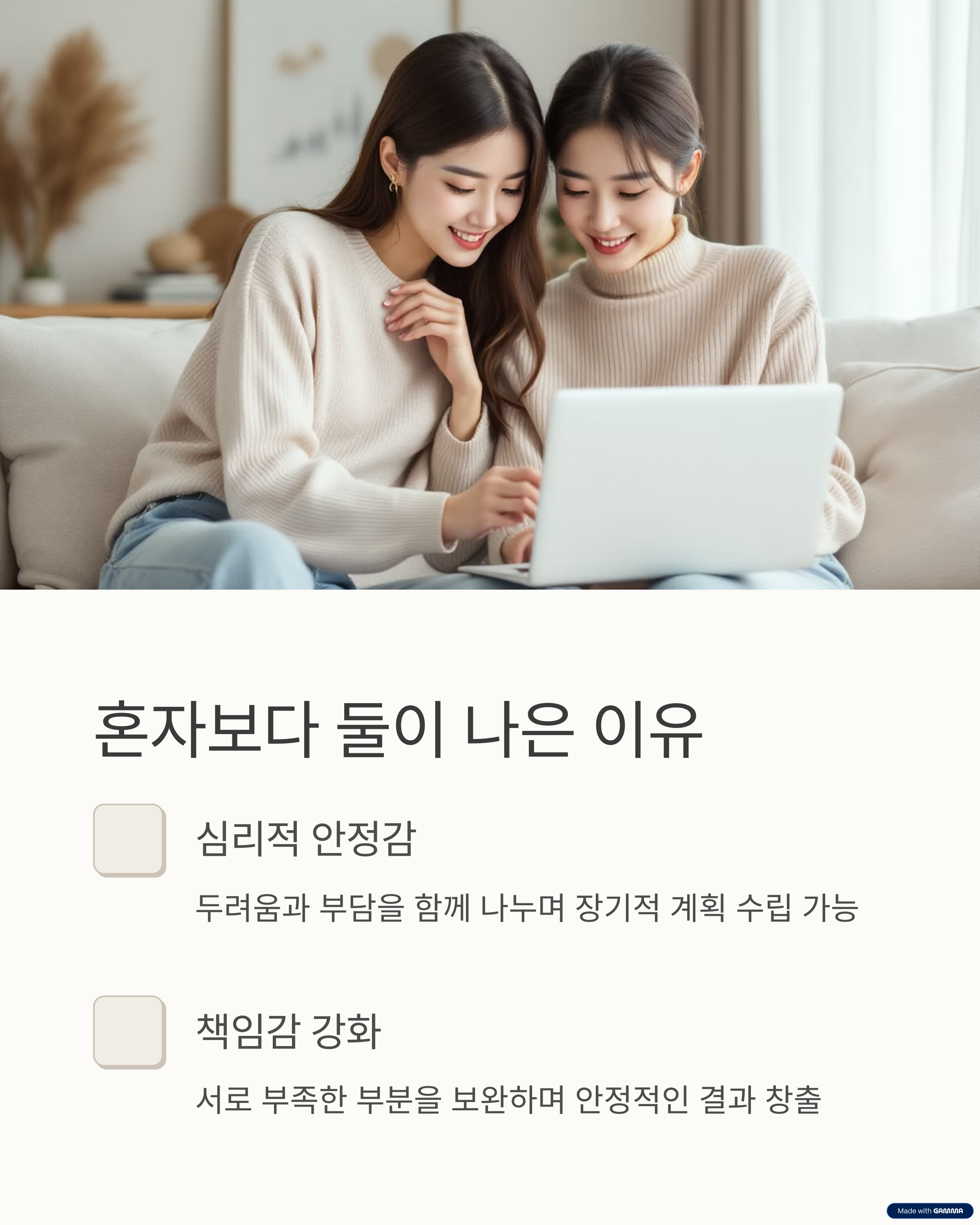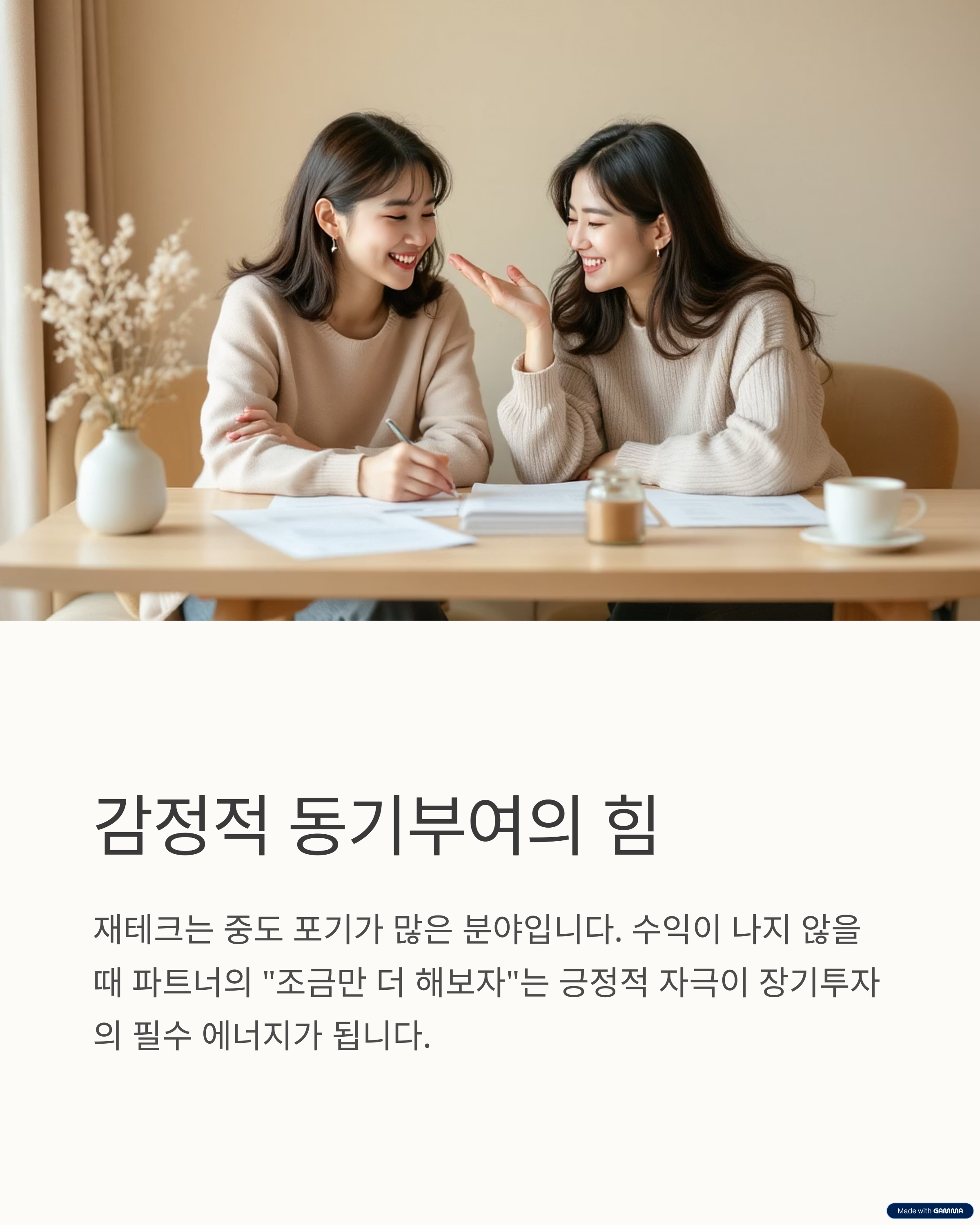 서로의 강점을 모아 함께 재테크의 길을 걸어가는 데 도움이 되길 바랍니다.