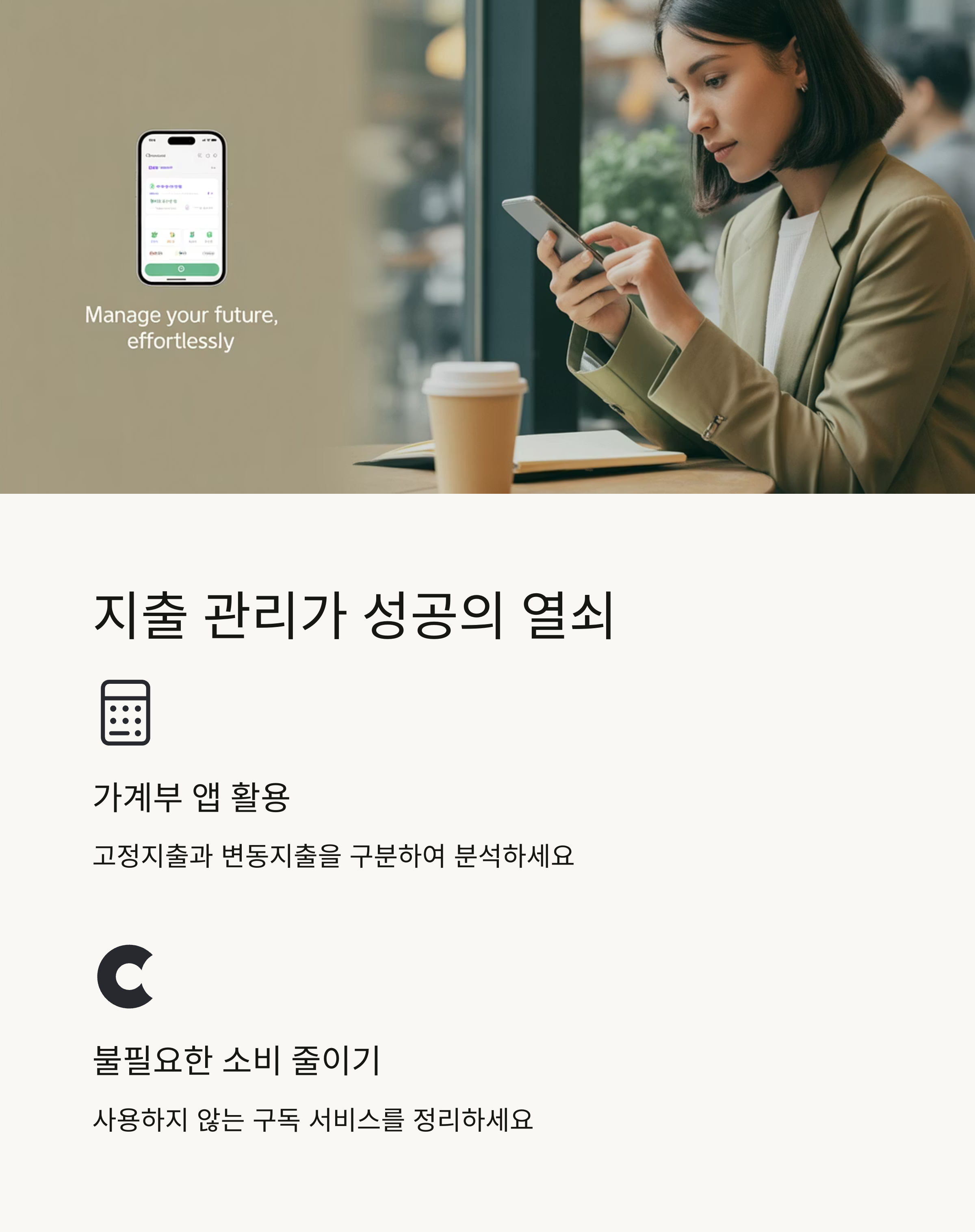 - 불필요한 구독 서비스나 무의미한 소비를 줄이세요.