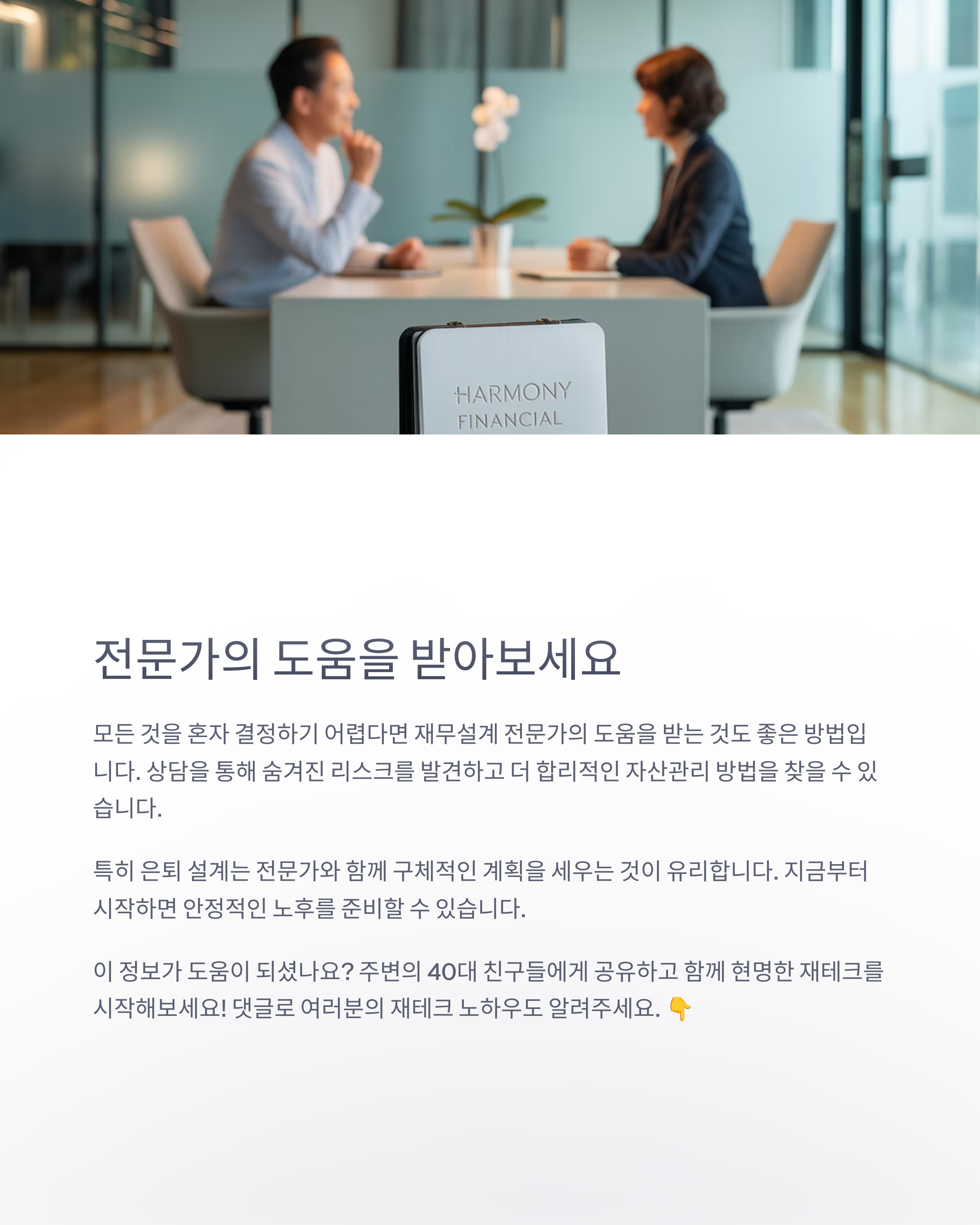 재무설계 전문가의 도움을 받아보는 것도 좋습니다.