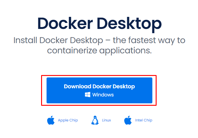그럼 위와 같은 내용이 나타나는데요. 이제 도커를 설치해야 할 차례입니다. 순서대로 Install Docker – Download Docker Desktop을 눌러주고 나타나는 인터넷 사이트에서 Dwonload Docker Dosktop을 눌러 설치 프로그램을 다운로드 받습니다.