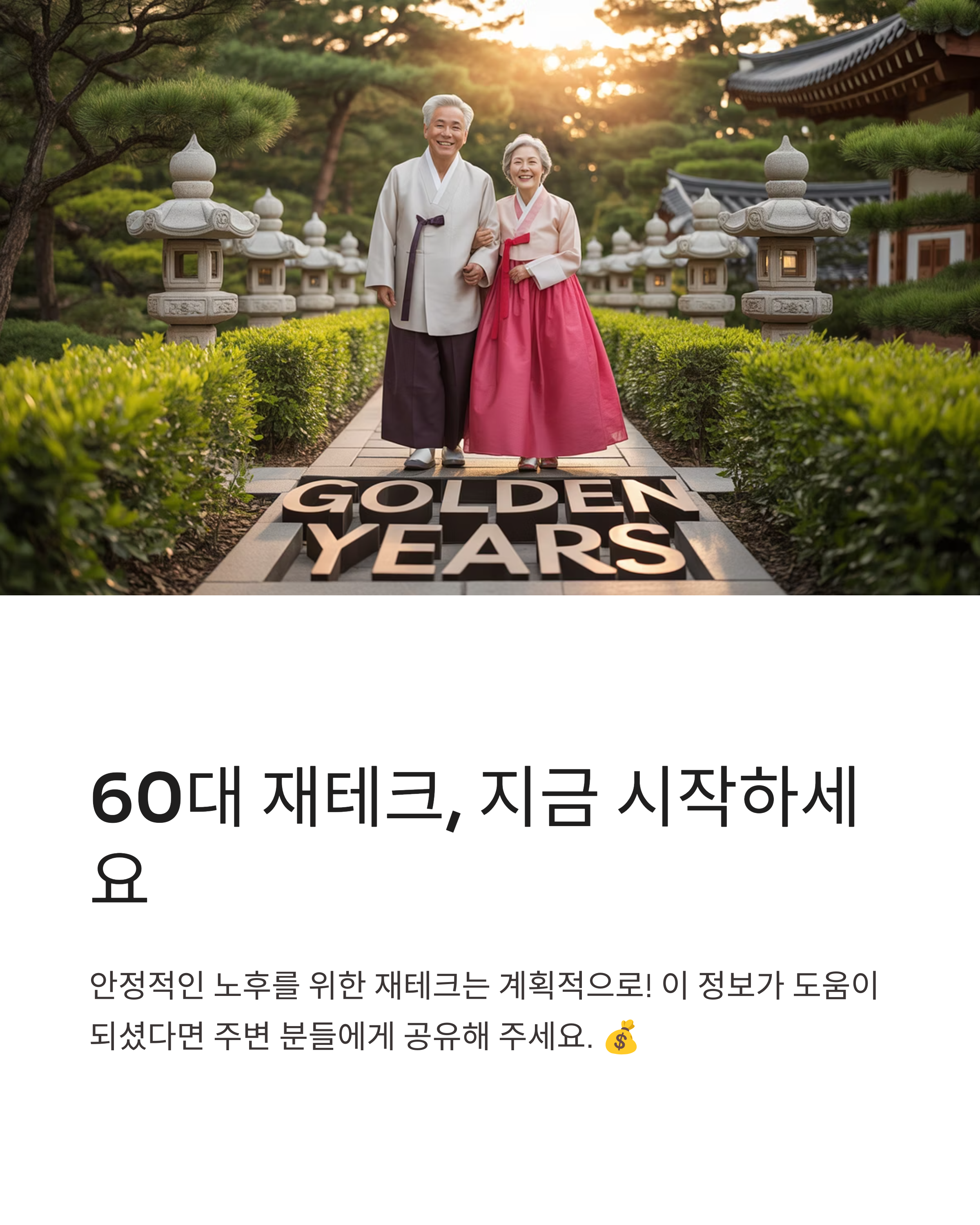 노후를 준비하는 60대 분들에게 재테크는 더 이상 선택이 아니라 필수라고 할 수 있습니다.