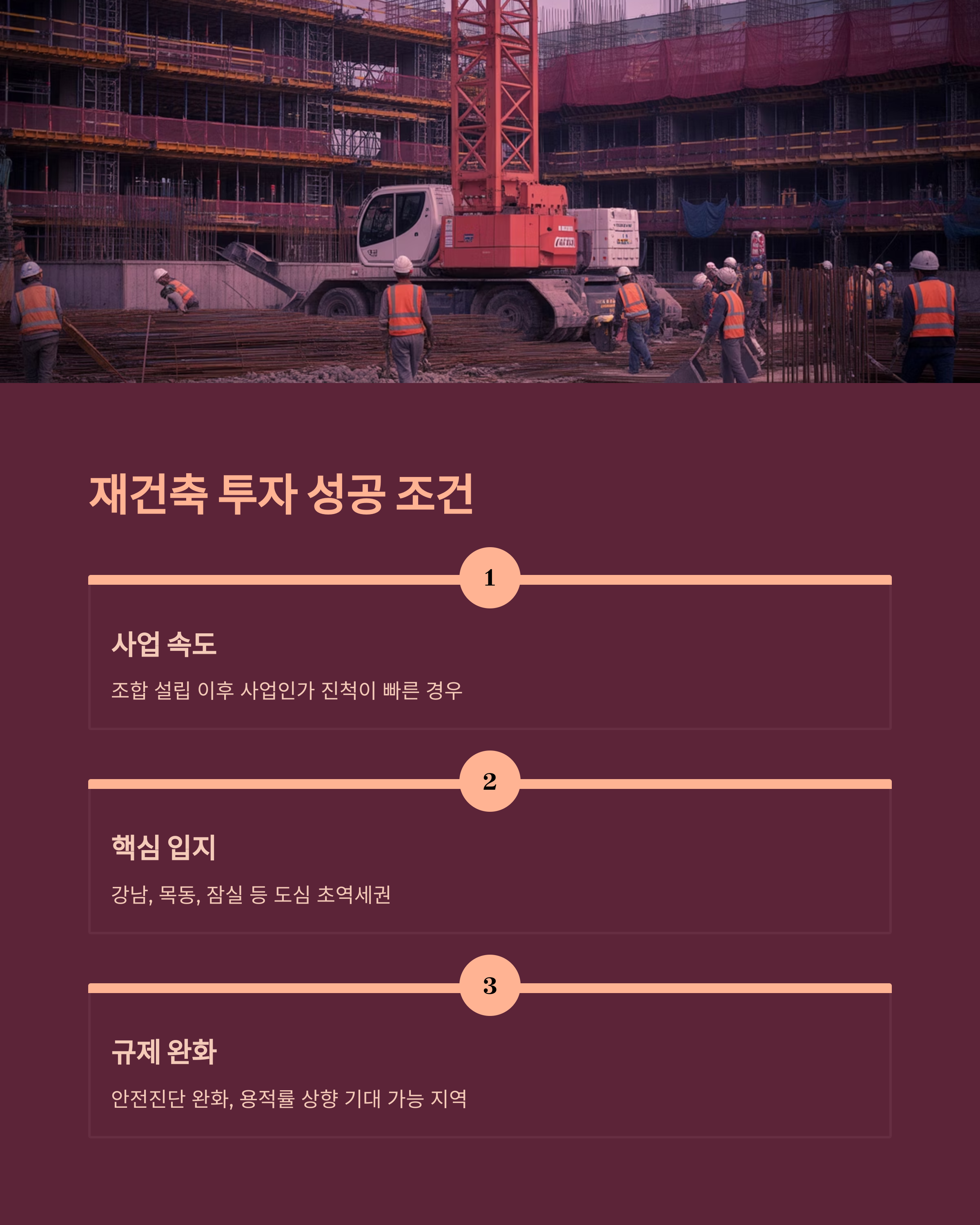 이런 요소들이 복합적으로 작용하면 재건축 투자에 성공 확률이 높아집니다.
