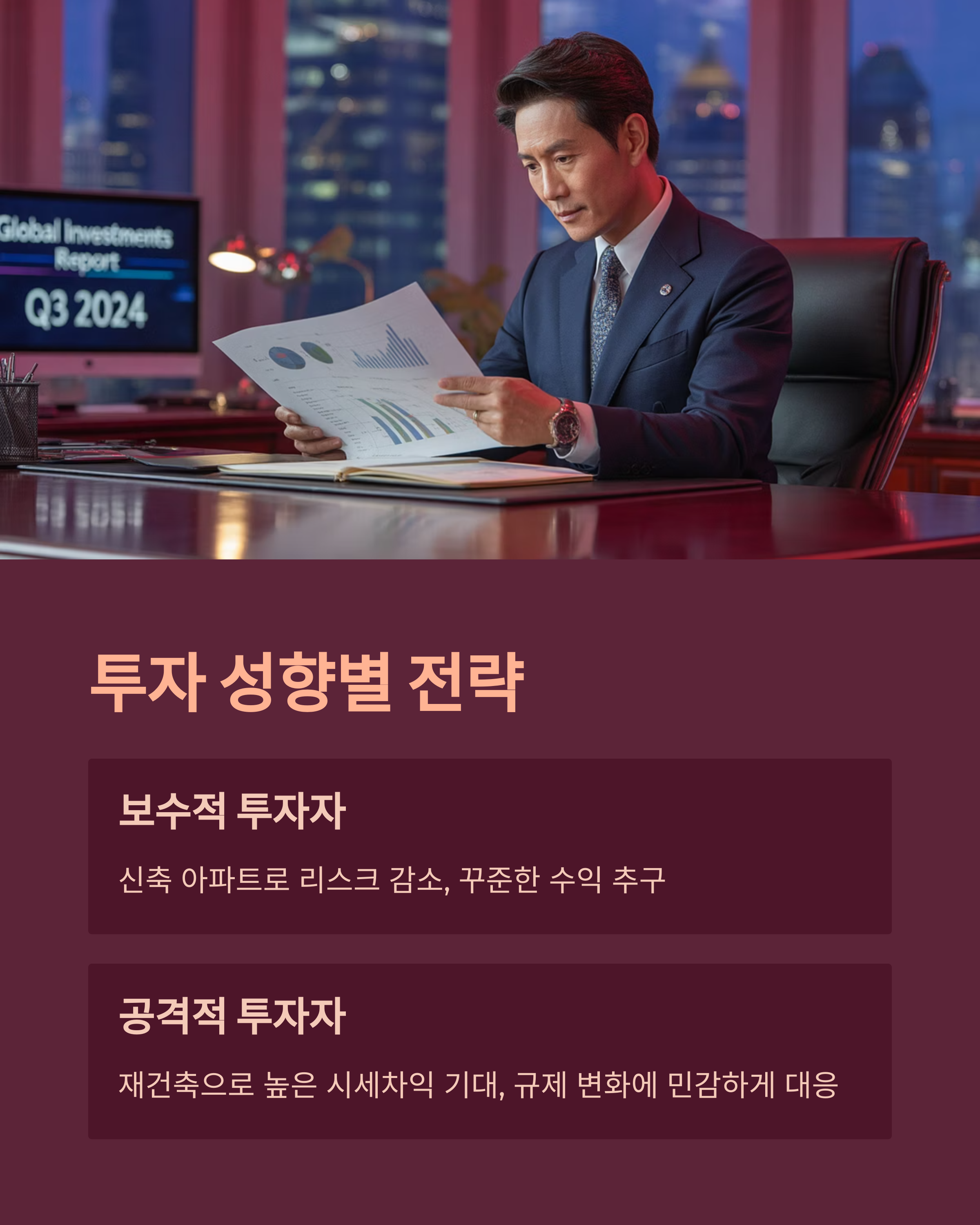 반면 공격적인 투자자라면 재건축 아파트를 통해 높은 시세차익을 기대할 수 있습니다.