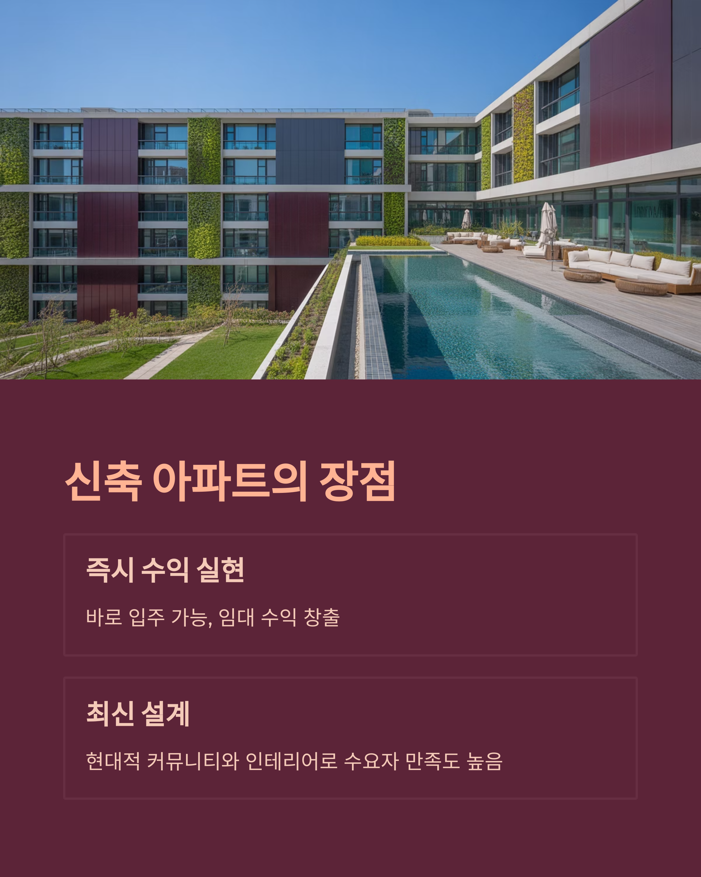 신축 아파트는 안정성과 즉시 수익 실현이 장점