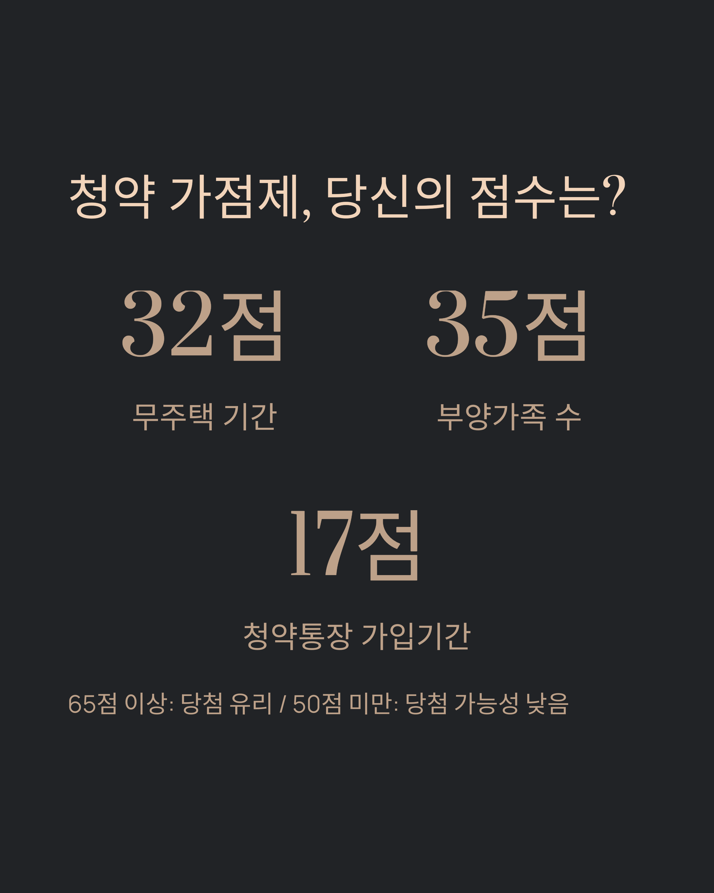 가점이 65점 이상일 수 있어 유리한 고지를 점할 수 있습니다.