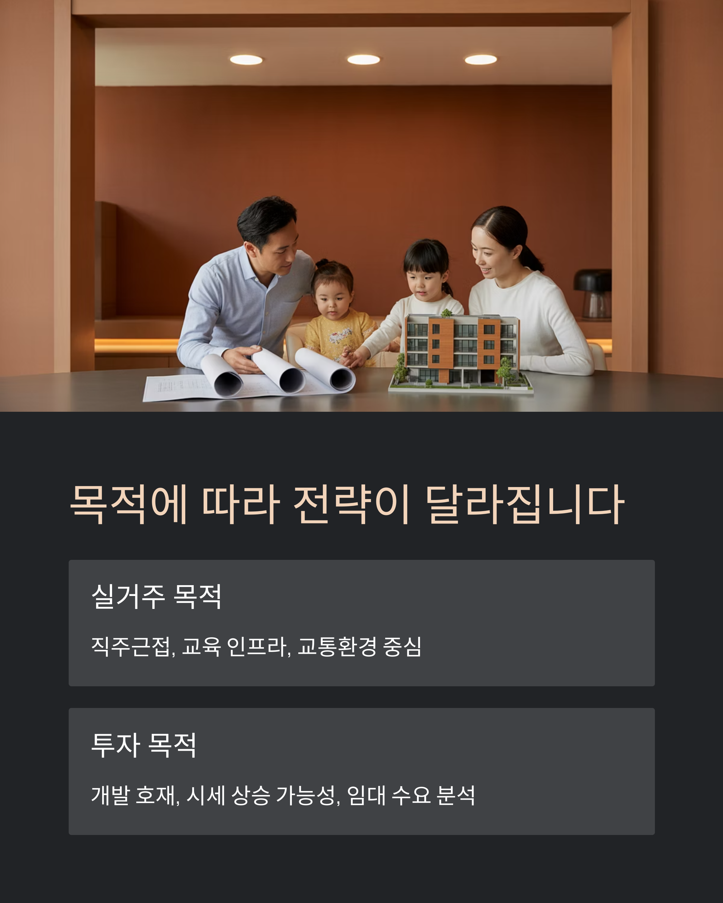 청약 전략은 실거주 목적과 투자 목적에 따라 다르게 접근해야 합니다.