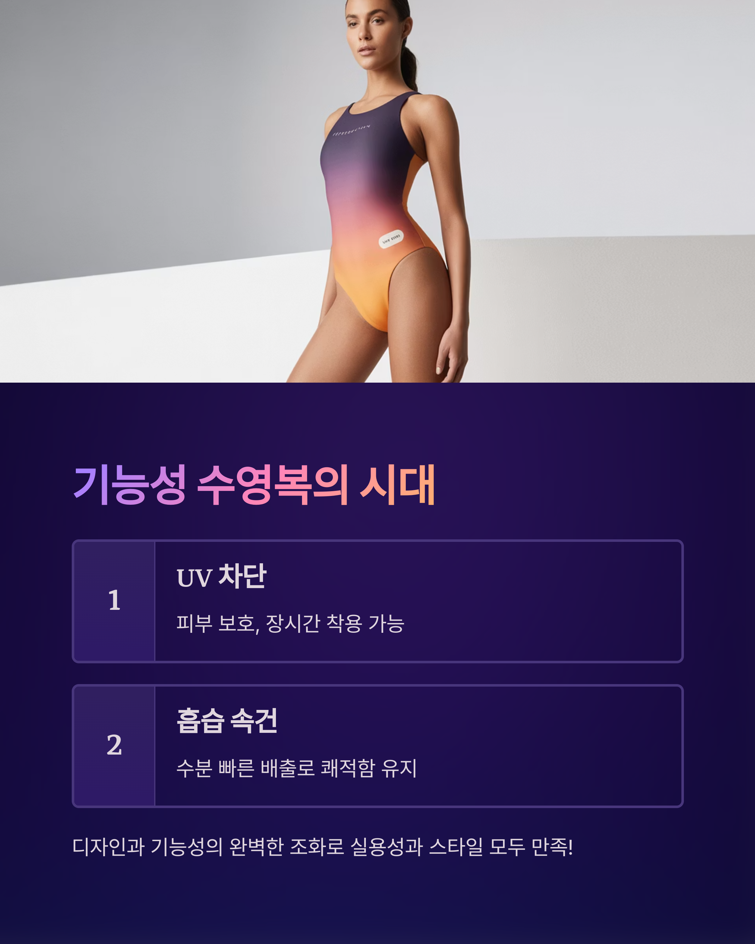 빠른 건조, 땀 흡수와 배출 기능이 탑재된 수영복이