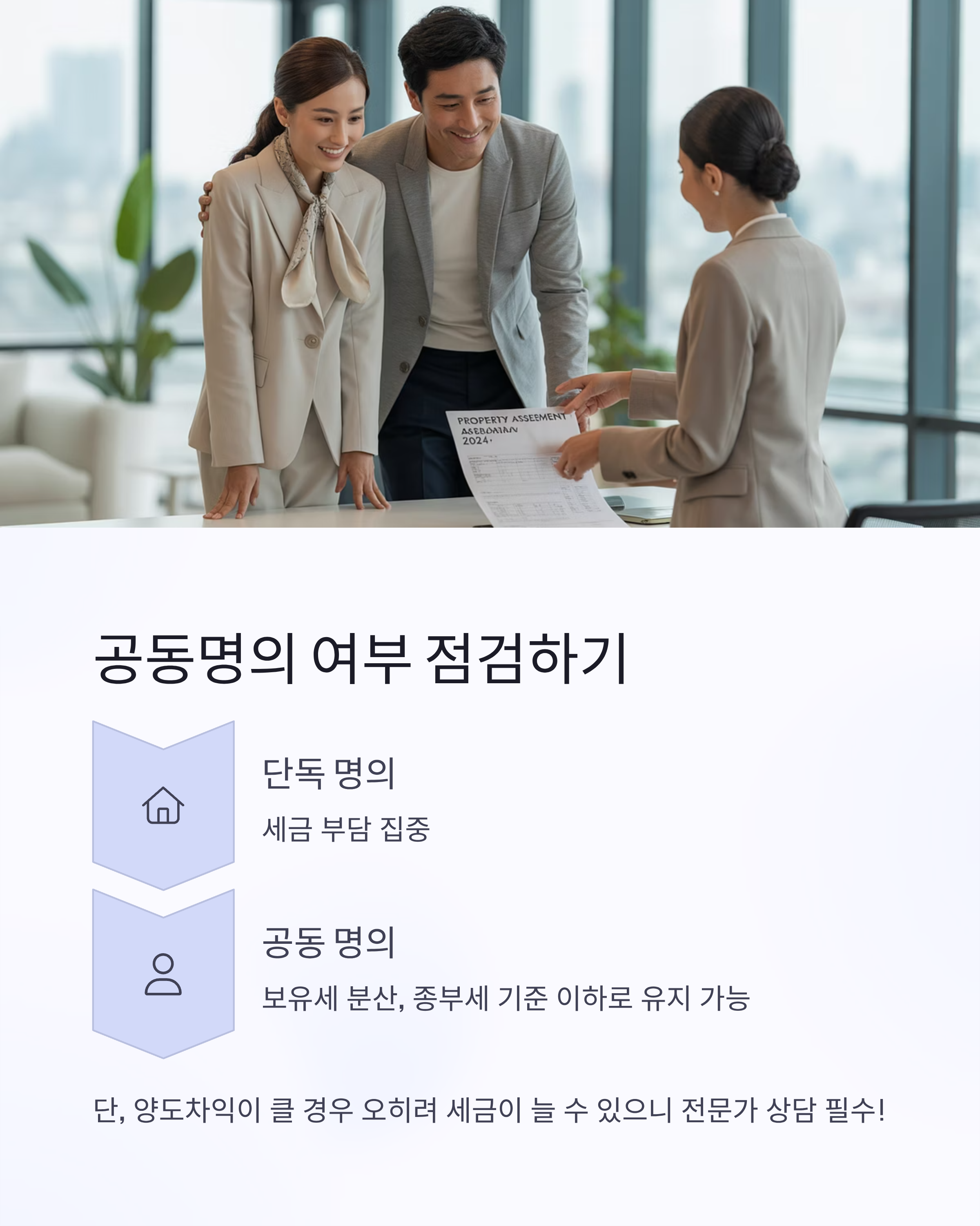 고가 부동산 보유 시 단독 명의보다 공동 명의가 유리할 수 있어요.