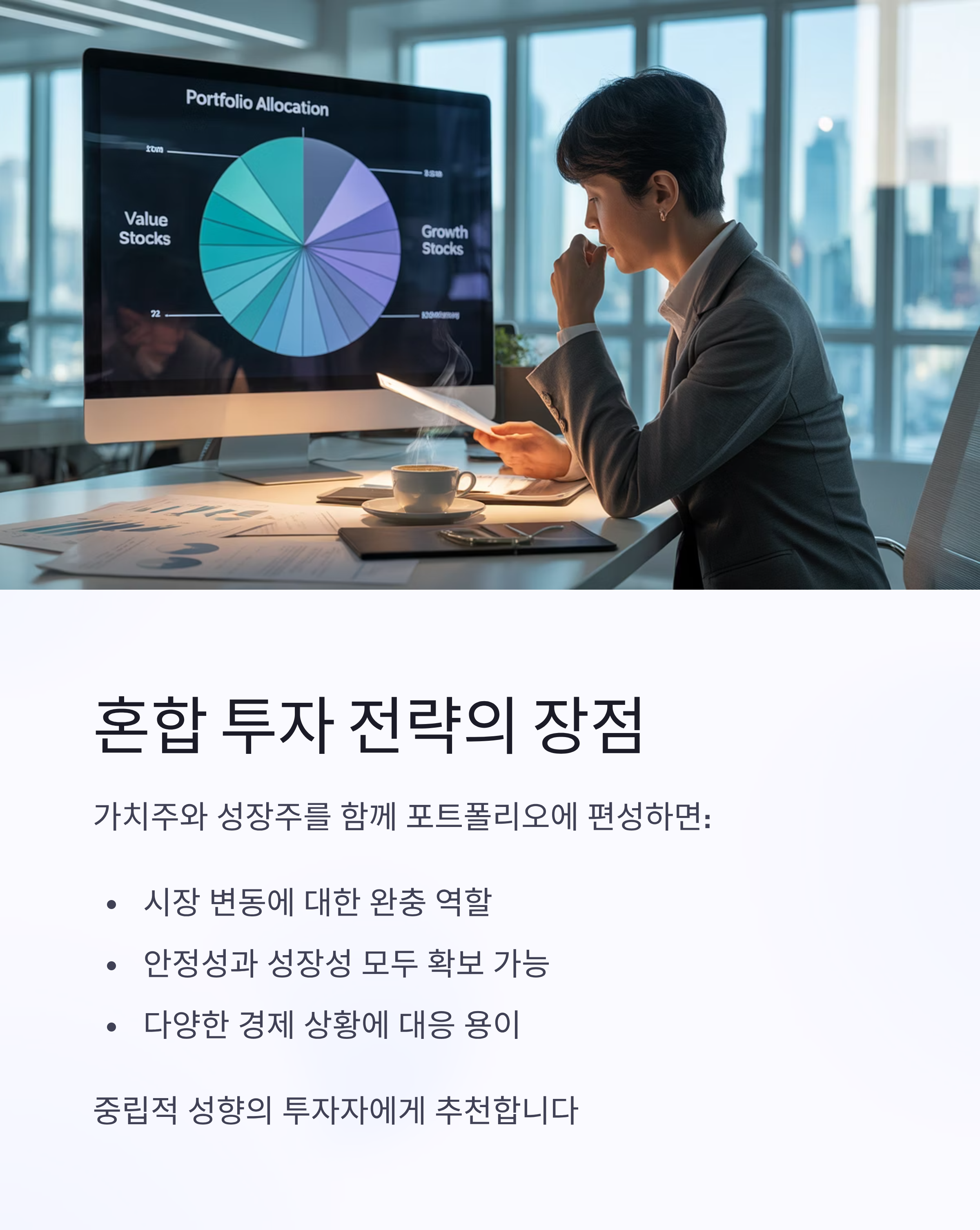 가치주와 성장주를 함께 포트폴리오에 편성하는 방법도 있습니다.