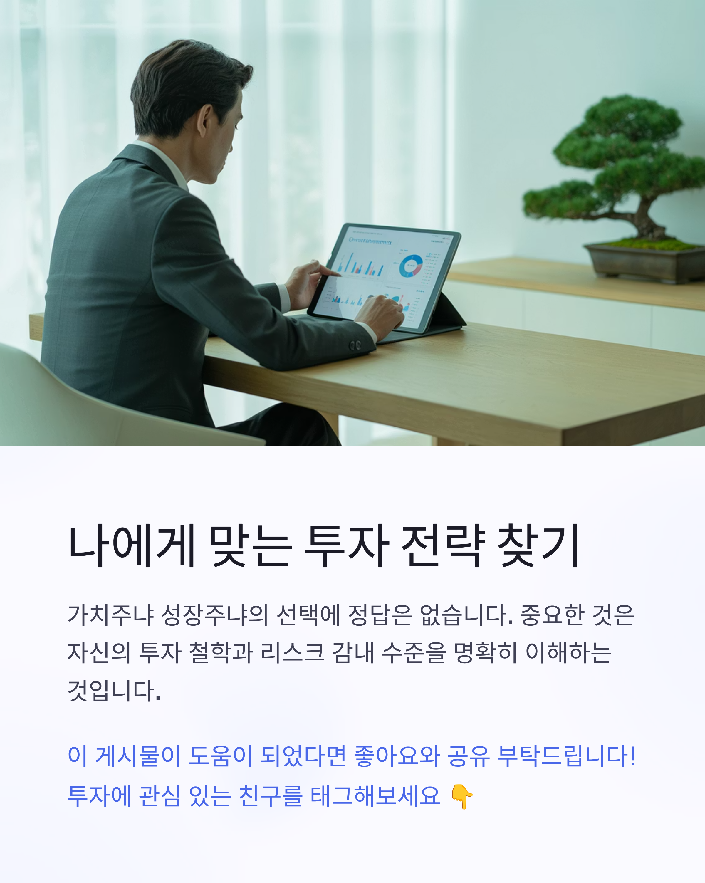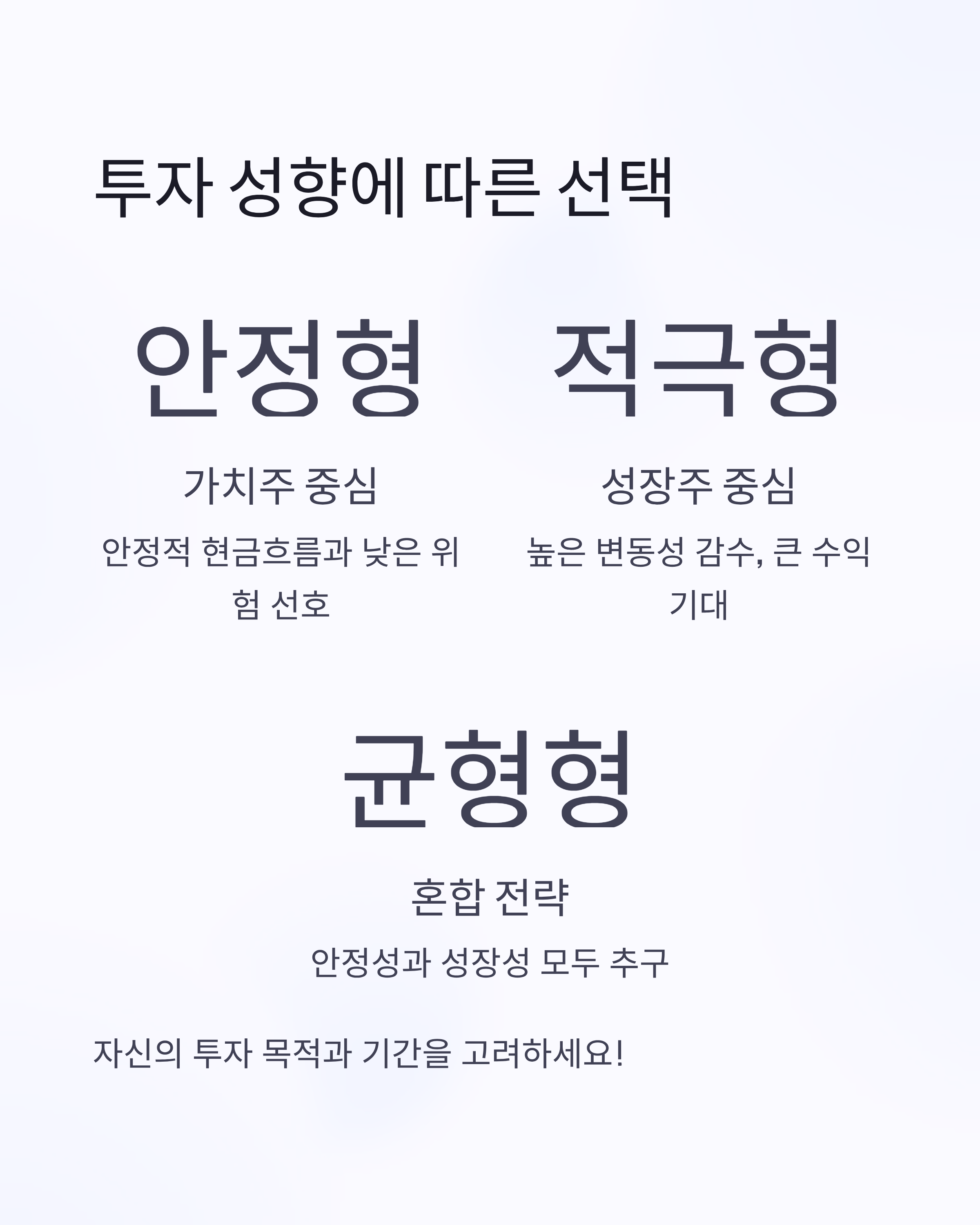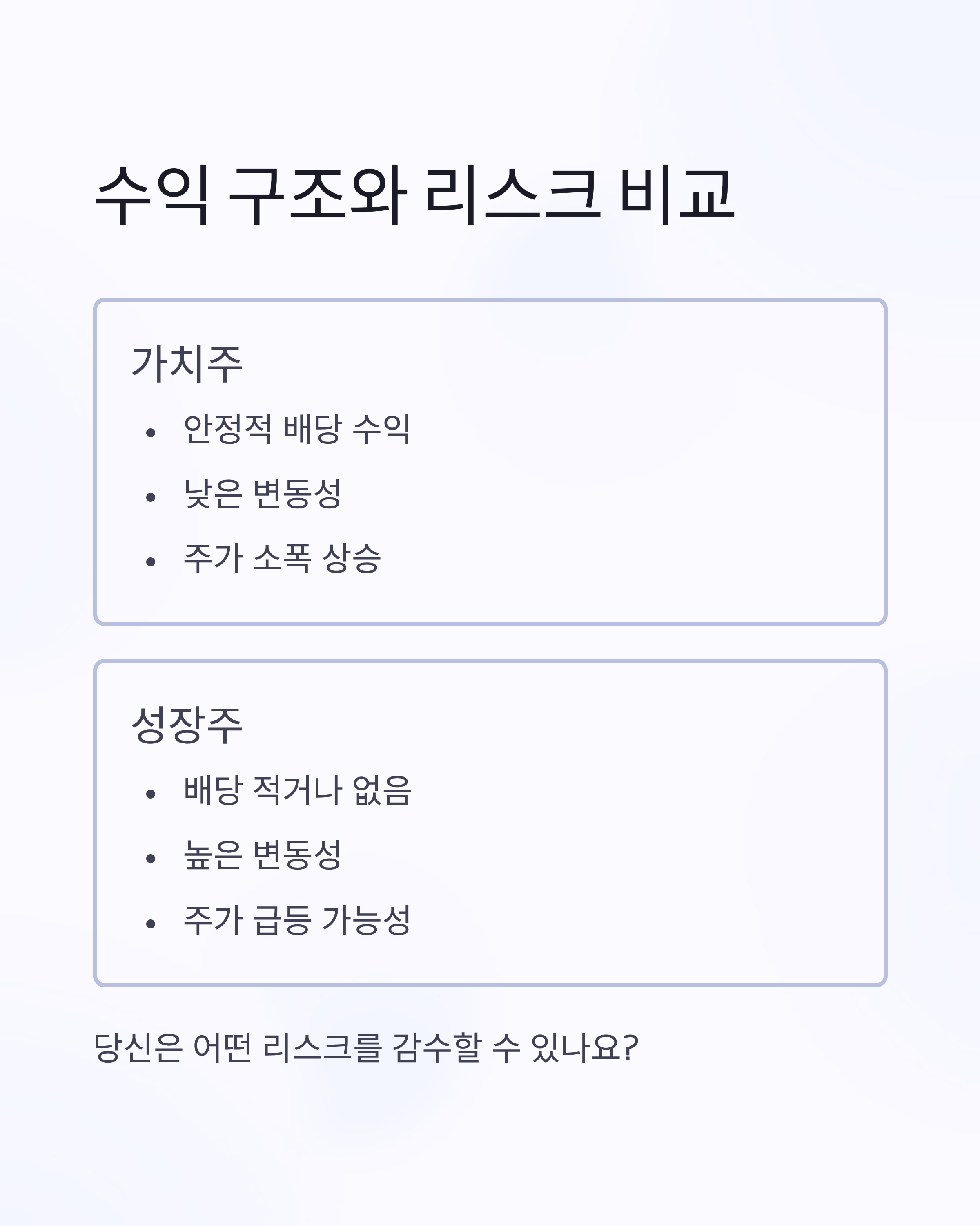 안정적 현금 흐름과 낮은 위험을 선호한다면 가치주가 적합합니다.
